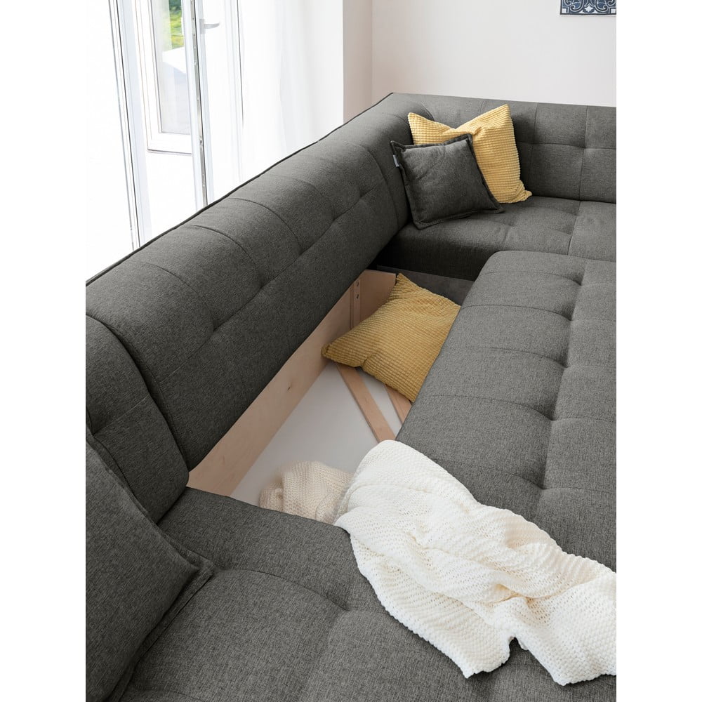 Ciemnoszara rozkładana sofa w kształcie litery "U" Miuform Dazzling Daisy, prawostronna