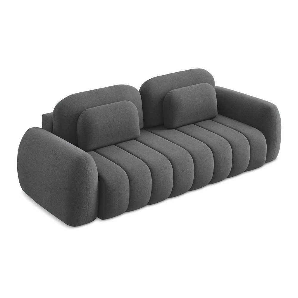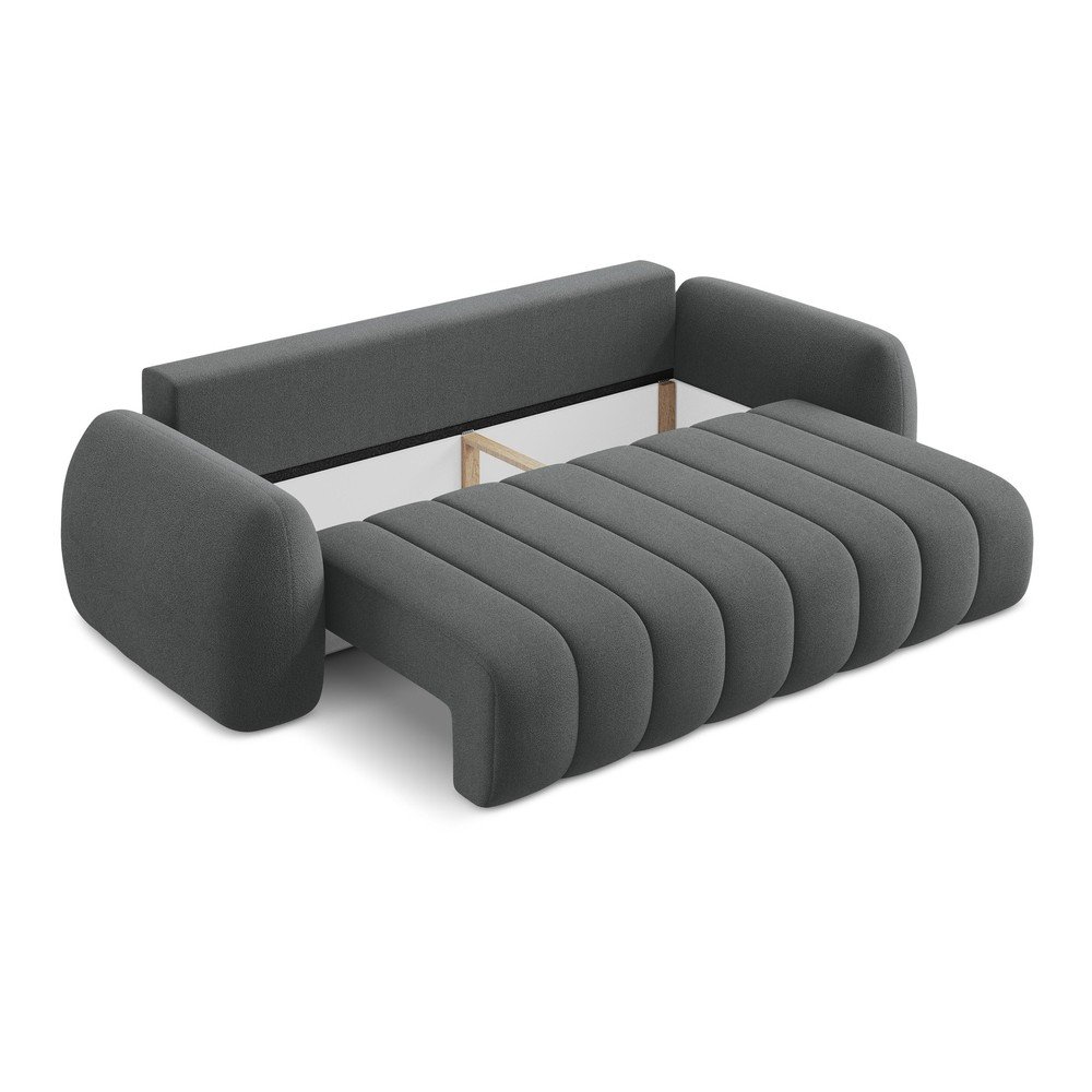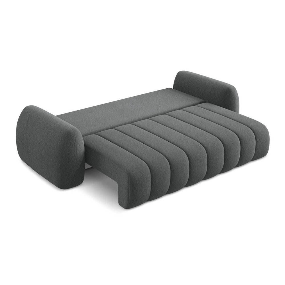 Ciemnoszara sofa rozkładana z materiału bouclé ze schowkiem 266 cm Pele – Makamii