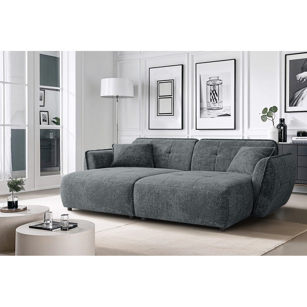 Ciemnoszara sofa z tkaniny szenilowej z szezlongiem 252 cm Nelia Big – Ropez