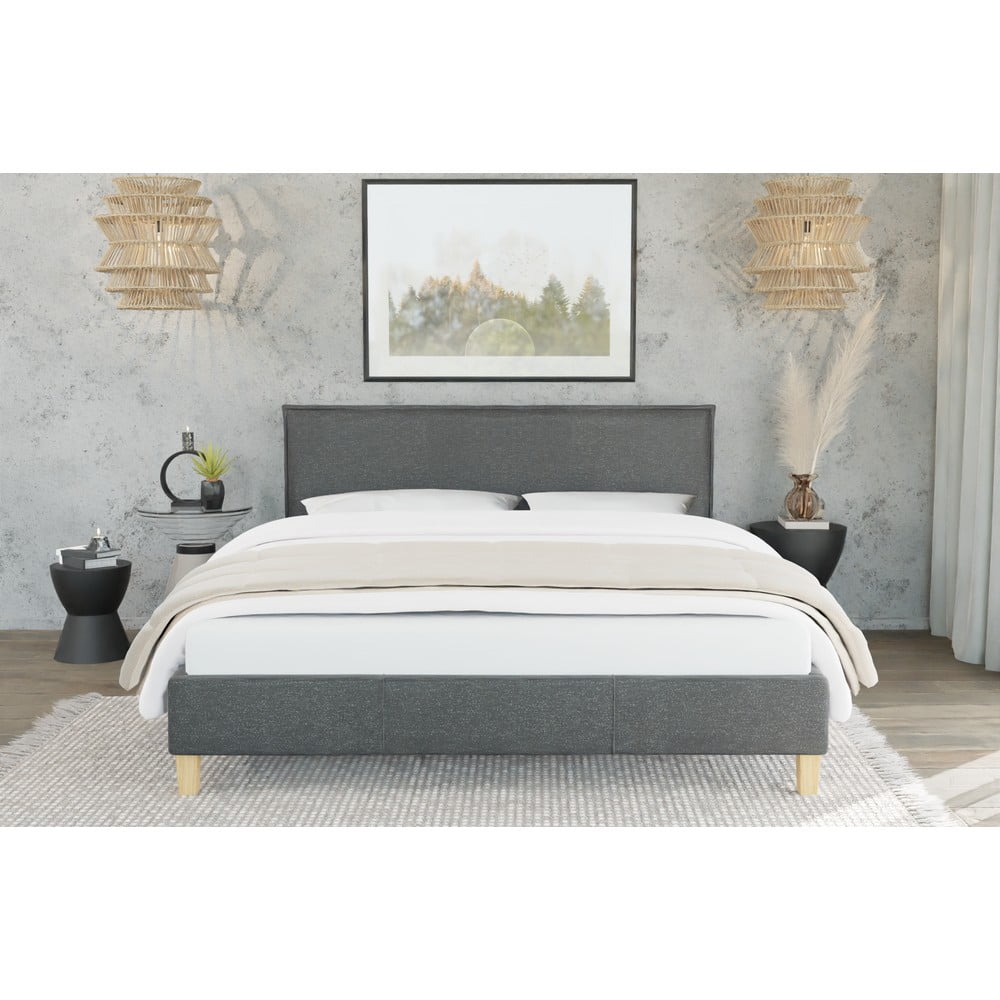 Ciemnoszare tapicerowane łóżko ze stelażem 90×200 cm Tina – Ropez