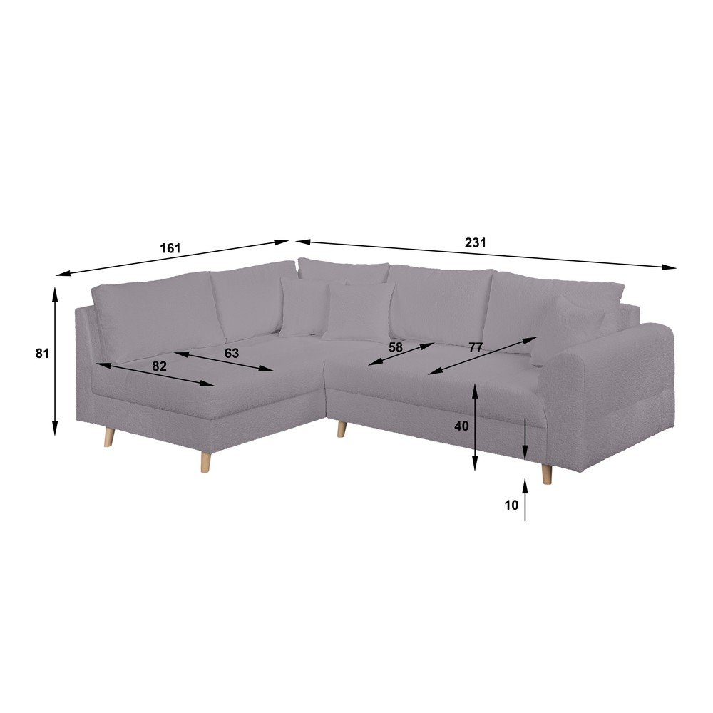 Ciemnoszary narożnik z materiału bouclé (lewostronny) Ariella – Ropez