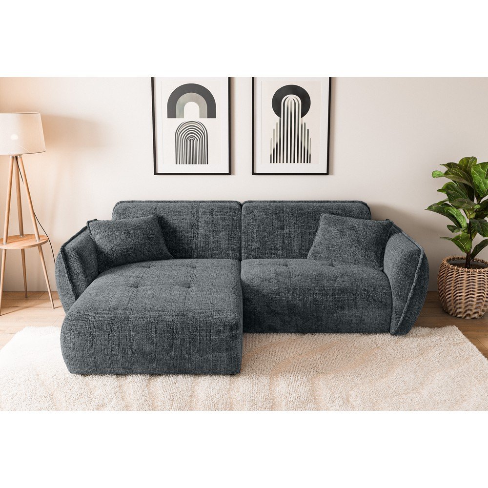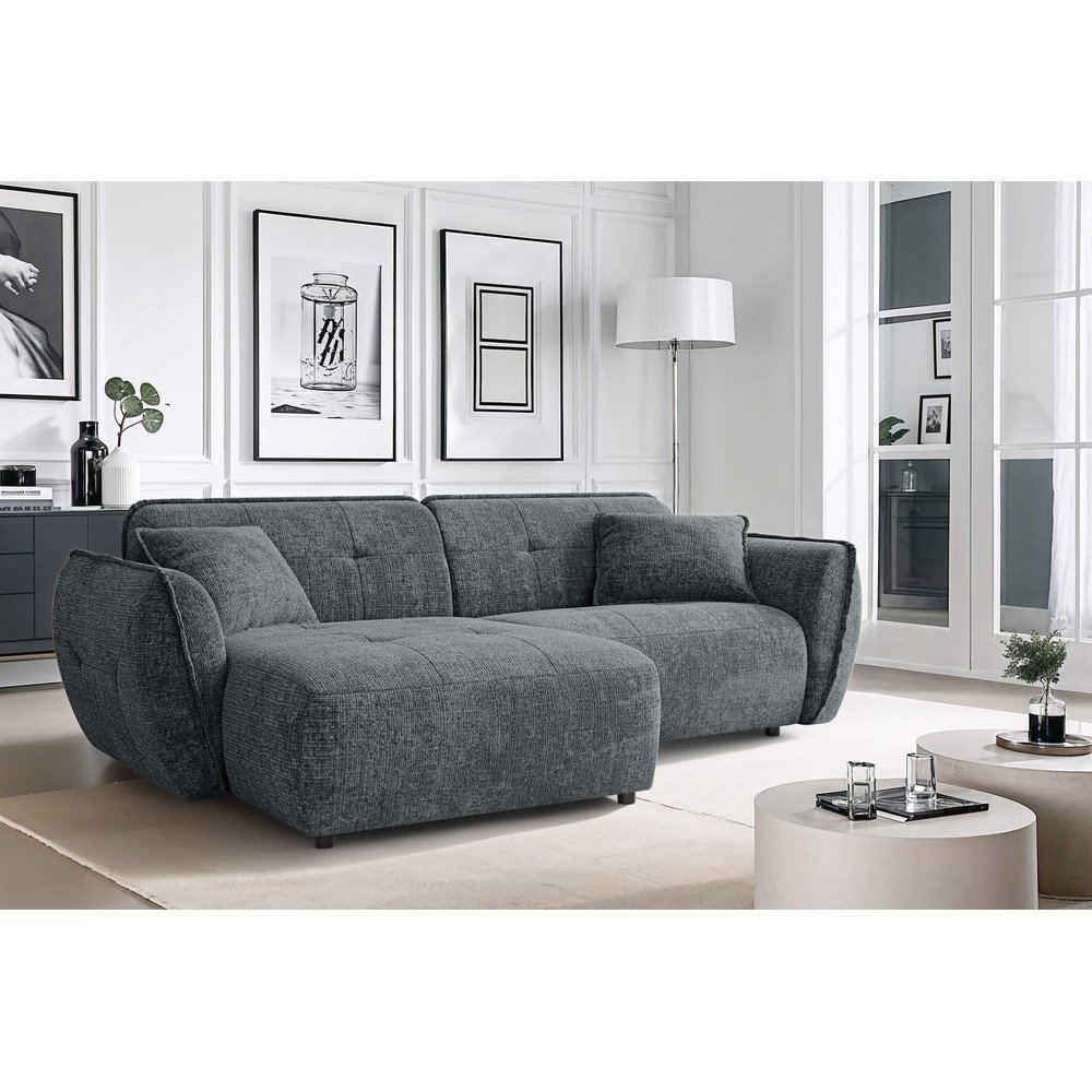 Ciemnoszary narożnik z tkaniny szenilowej (lewostronny/z szezlongiem) Nelia – Ropez