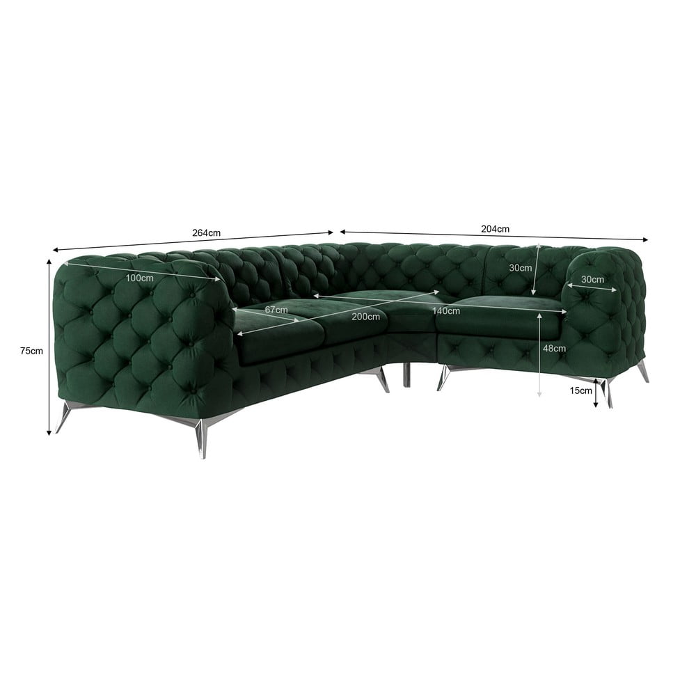 Ciemnozielony aksamitny narożnik (prawostronny/w kształcie litery L) Chelsea – Ropez
