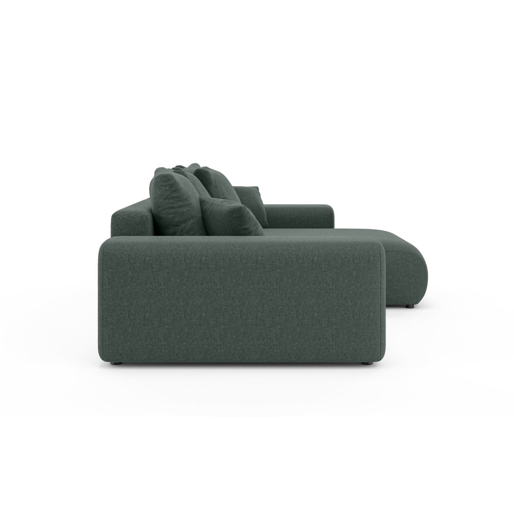 Ciemnozielony rozkładany narożnik ze schowkiem (strona zmienna) Luma – Ropez