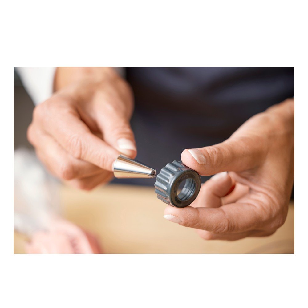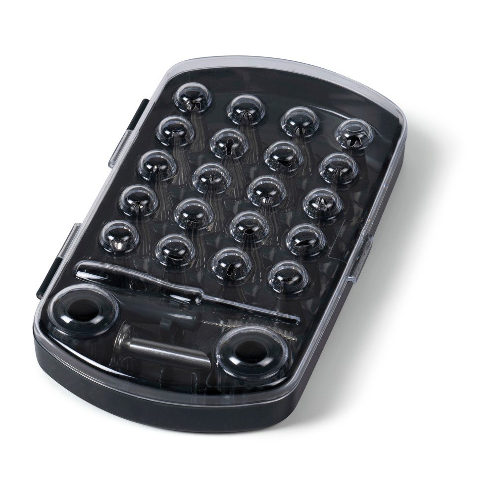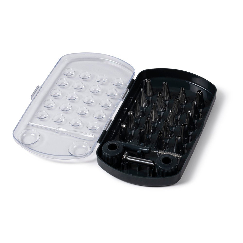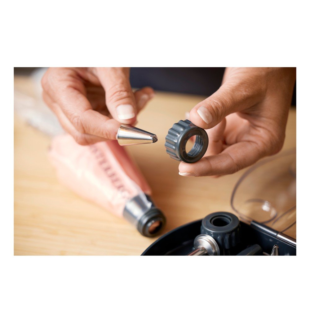Ten wszechstronny zestaw zawiera łącznie 20 różnych metalowych tylek do dekorowania z otworami o średnicy 3-4 mm, które umożliwiają tworzenie różnorodnych kształtów i wzorów. Ponadto w zestawie znajduje się również końcówka do pączków ze stali nierdzewnej, dwa adaptery ułatwiające wymianę końcówek oraz poręczna szczoteczka do czyszczenia ułatwiająca utrzymanie w czystości.