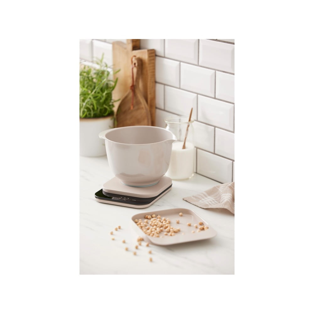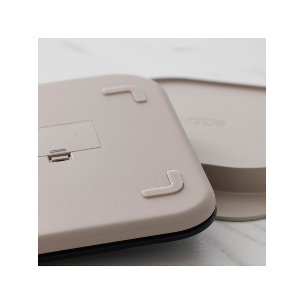 Chociaż wagę włącza się ręcznie, wyłącza się ona automatycznie. W zestawie znajduje się miska o pojemności 300 ml wykonana z ABS, która służy jako pokrywa, gdy waga nie jest używana. Posiada również podstawę z czterema silikonowymi nóżkami do stabilnego użytkowania na blacie kuchennym.