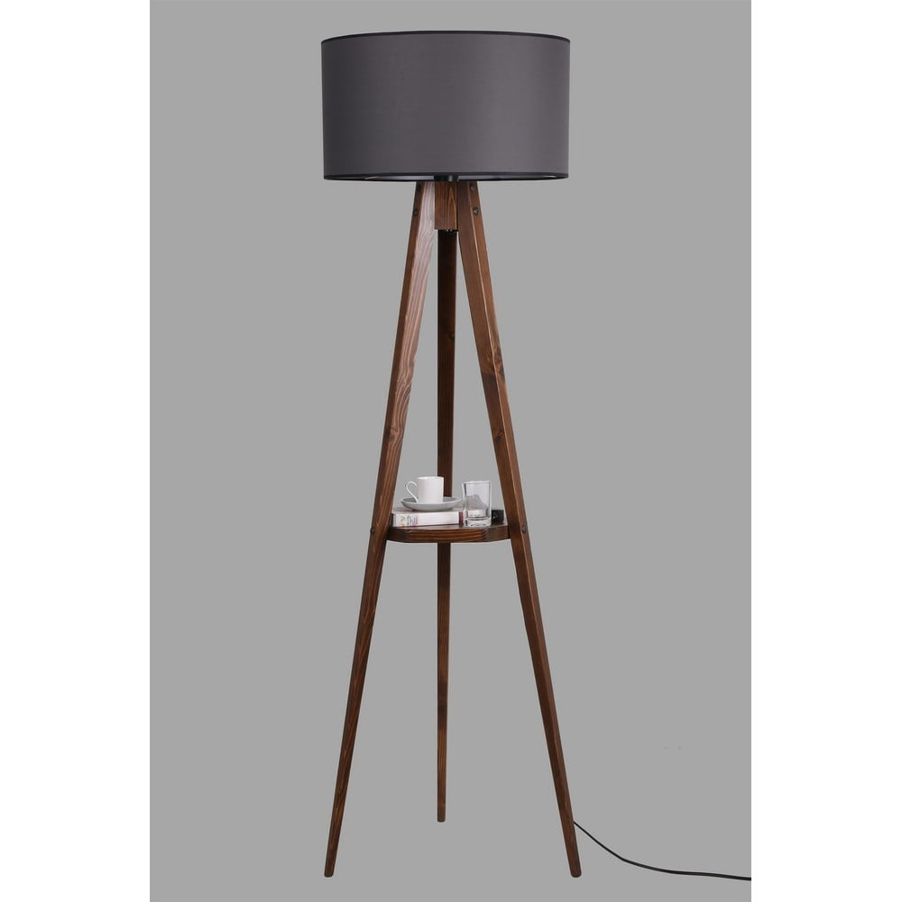 Czarna/brązowa lampa stojąca z półką z tekstylnym kloszem (wysokość 154 cm) Sehbali Tripod – Opviq lights