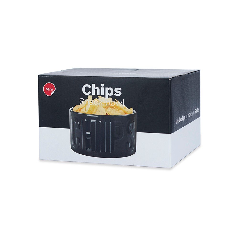 Miska do serwowania Chips marki Balvi to idealne naczynie na Twoje ulubione chipsy. Wykonana została z ceramiki, a jej design wyróżnia się wyraźnym, wytłoczonym napisem "CHIPS", który jest dobrze widoczny na zdjęciu.