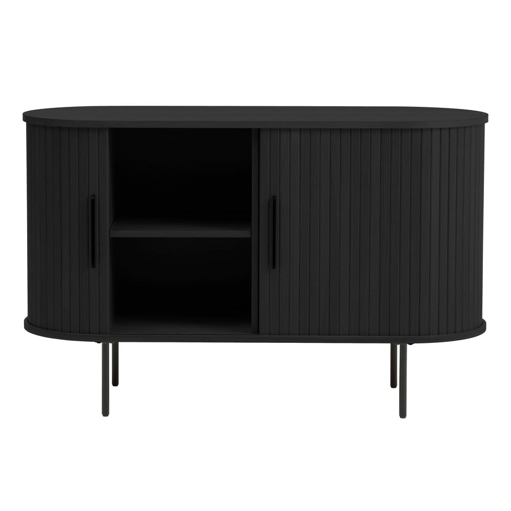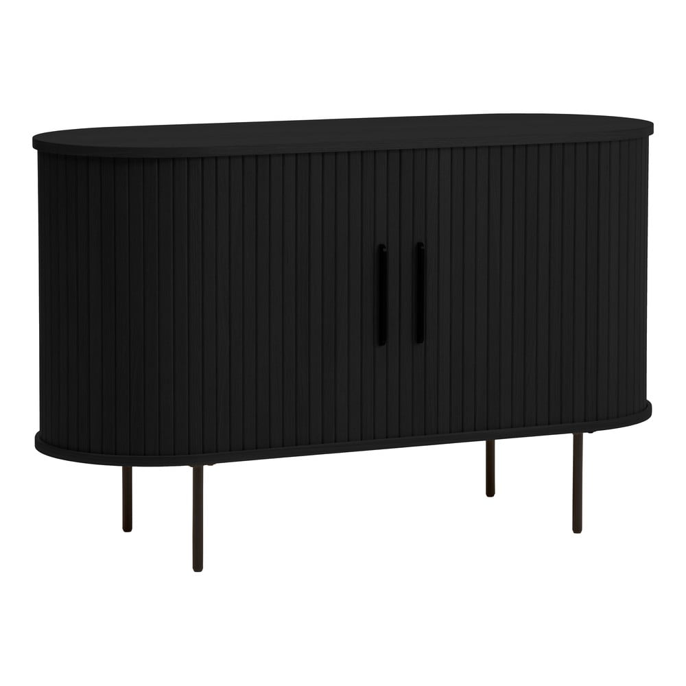 Czarna komoda w dekorze dębu z drzwiami przesuwnymi 120x76x45 cm Nola – Unique Furniture