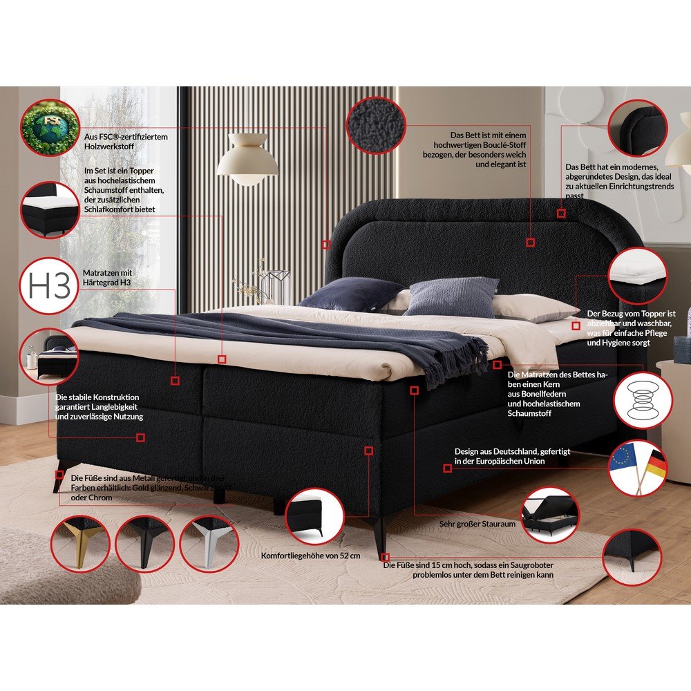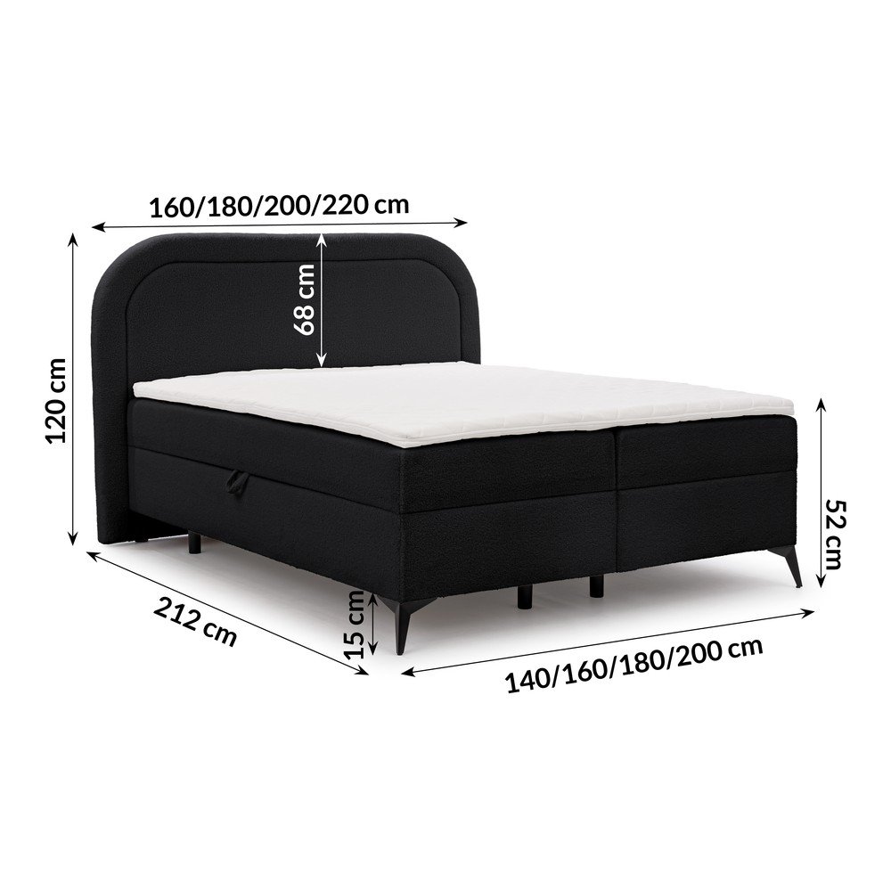 Czarne łóżko kontynentalne ze schowkiem 180×200 cm Ornes – Ropez