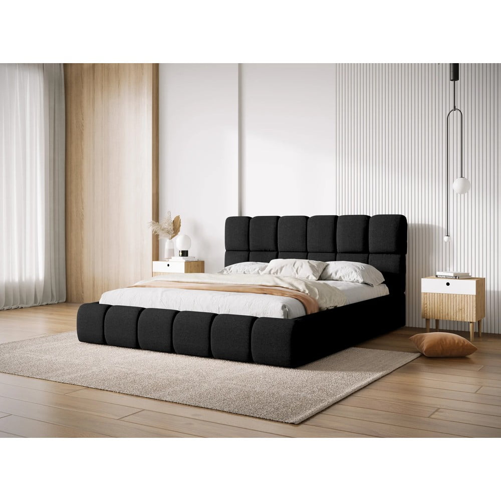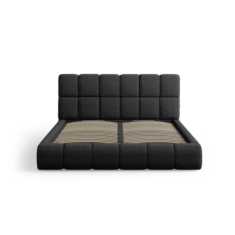 Czarne tapicerowane łóżko dwuosobowe ze schowkiem i stelażem 180×200 cm Bellis – Micadoni Home