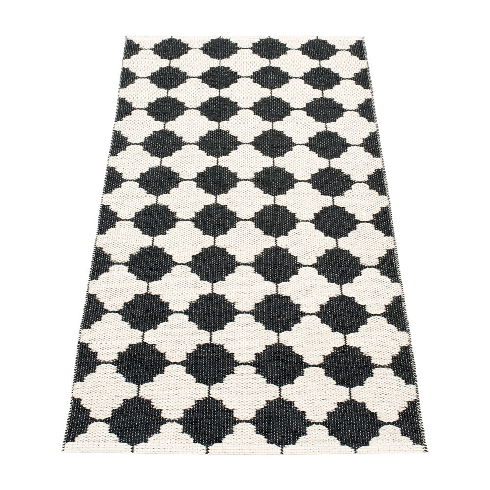 Dywan jest wykonany z wolnego od ftalanów szwedzkiego PVC i jest tkany na tradycyjnych krosnach. Ze względu na charakter materiału, jest trwały i nadaje się do użytku wewnątrz i na zewnątrz. Nie zatrzymuje kurzu i dlatego nadaje się również dla alergików. Jest bardzo łatwy w utrzymaniu w czystości – można go prać ręcznie lub w pralce w temperaturze 30°C.