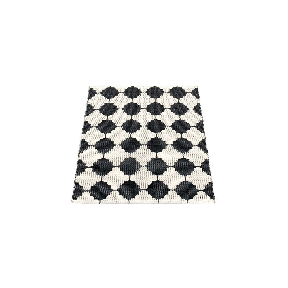Dywan jest wykonany z wolnego od ftalanów szwedzkiego PVC i jest tkany na tradycyjnych krosnach. Ze względu na charakter materiału, jest trwały i nadaje się do użytku wewnątrz i na zewnątrz. Nie zatrzymuje kurzu i dlatego nadaje się również dla alergików. Jest bardzo łatwy w utrzymaniu w czystości – można go prać ręcznie lub w pralce w temperaturze 30°C.