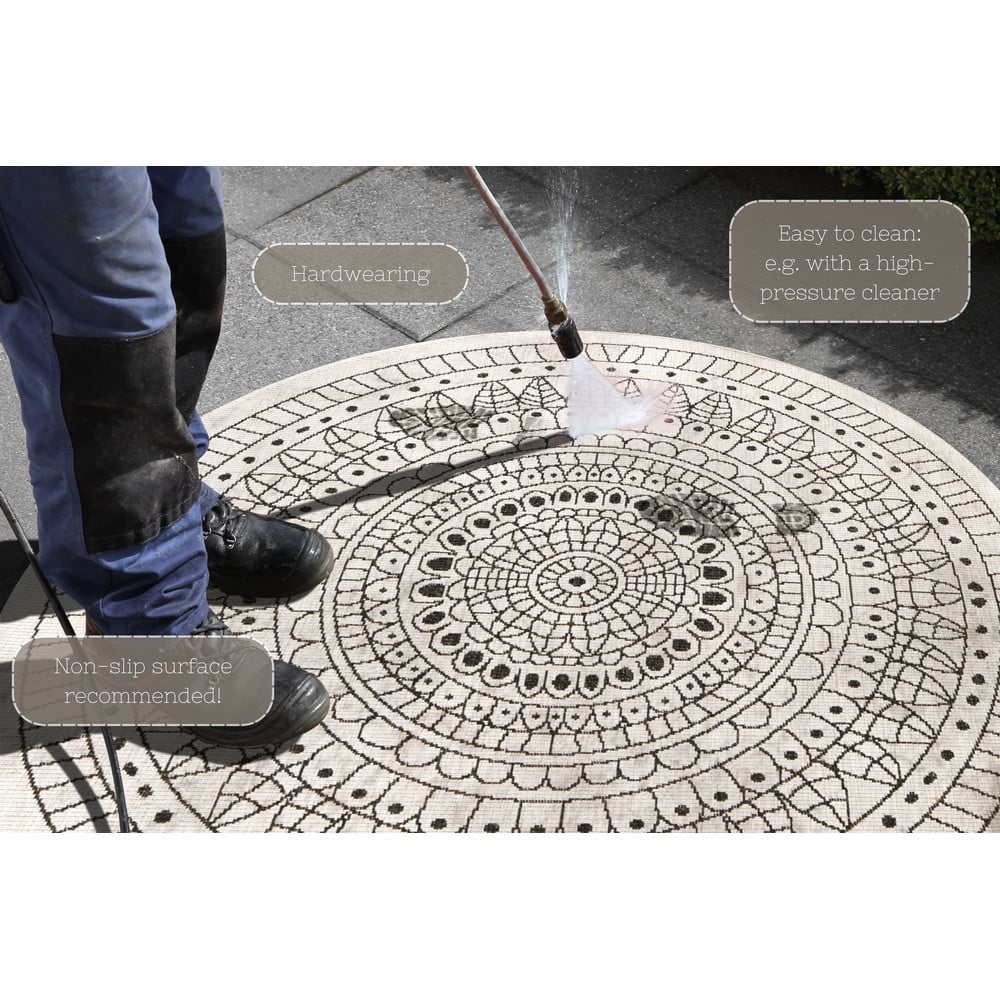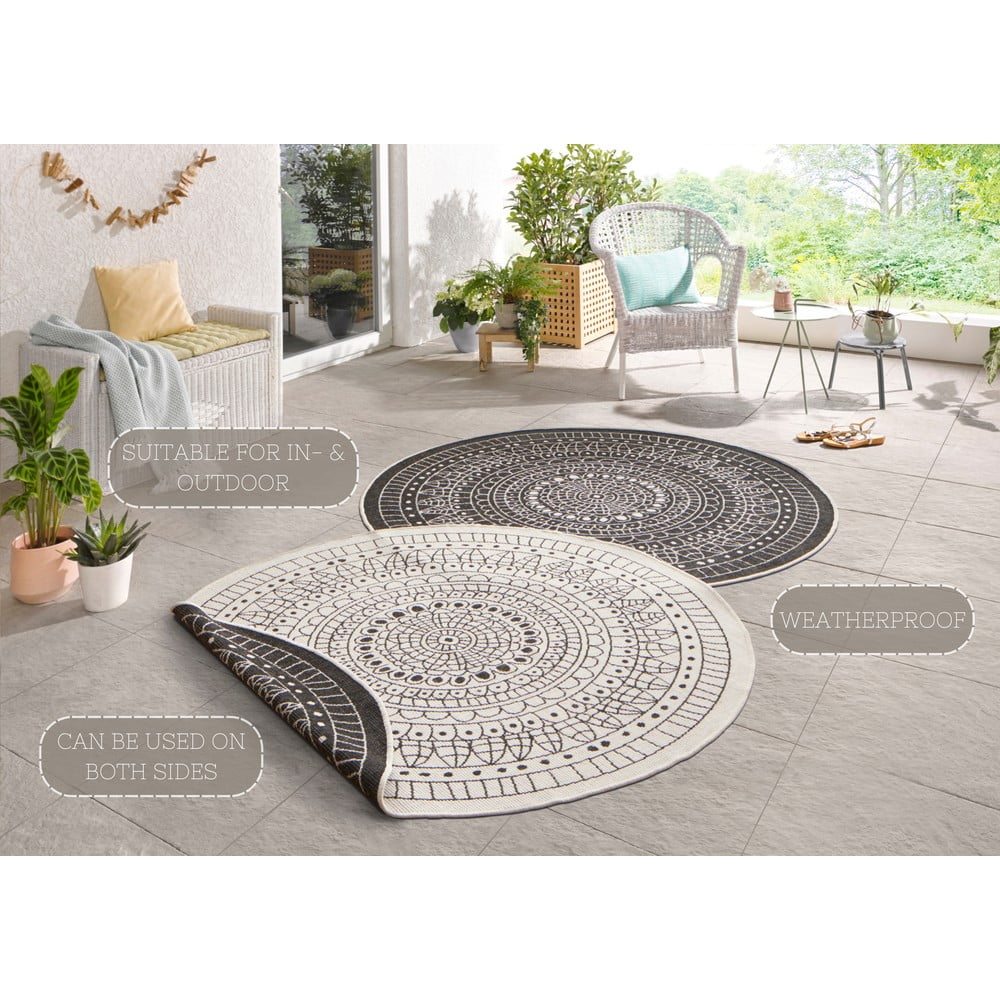 Czarno-kremowy dywan odpowiedni na zewnątrz NORTHRUGS Porto, Ø 140 cm