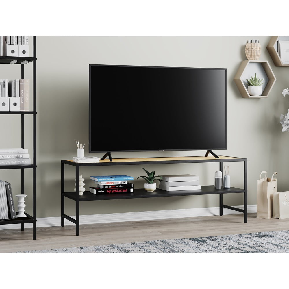 Czarno-naturalna szafka pod TV w dekorze dębu 120x40x35 cm Altino – Unique Furniture