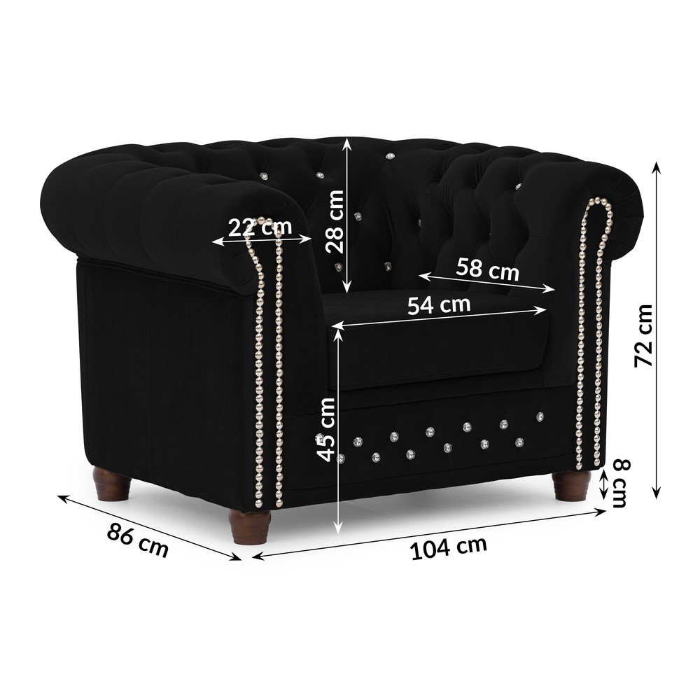 Czarny aksamitny fotel typu chesterfield York Blik – Ropez
