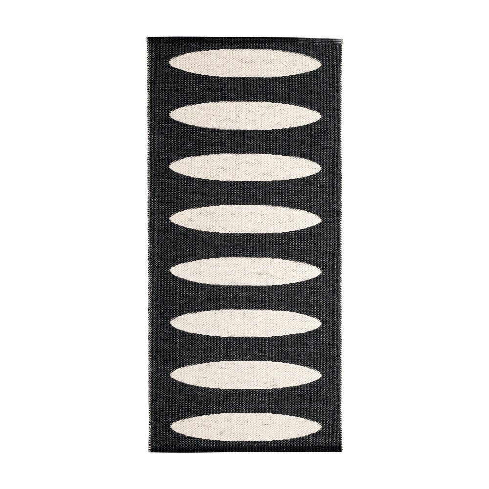 Dywan jest wykonany z tkanego na tradycyjnych krosnach szwedzkiego PVC, który nie zawiera ftalanów. Jest odporny na promienie UV, wiec nadaje się zarówno do domu, jak i na zewnątrz. Można go prać ręcznie lub w pralce w temperaturze 30°C.