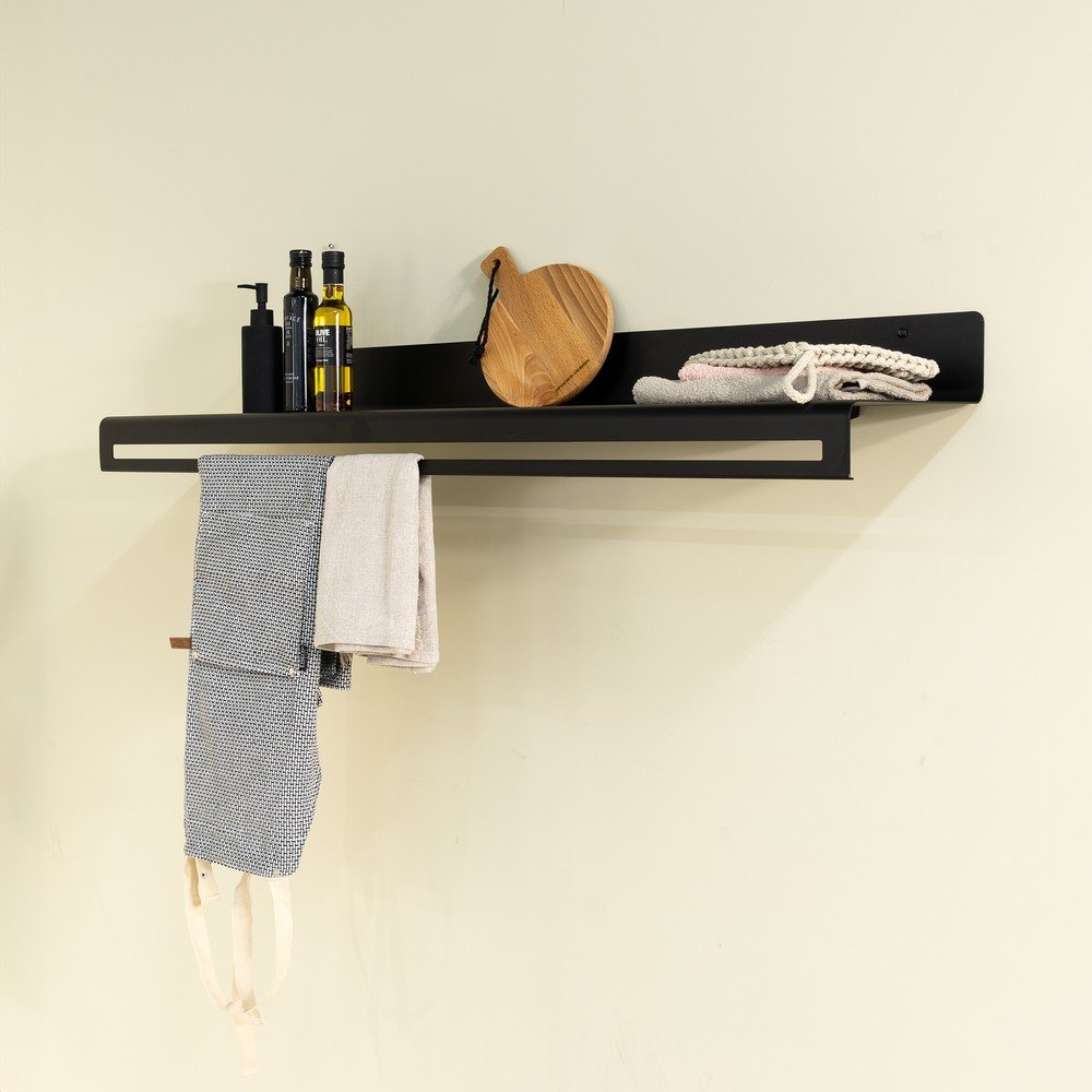 Czarny metalowy wieszak ścienny z półką 120 cm Sway – Spinder Design