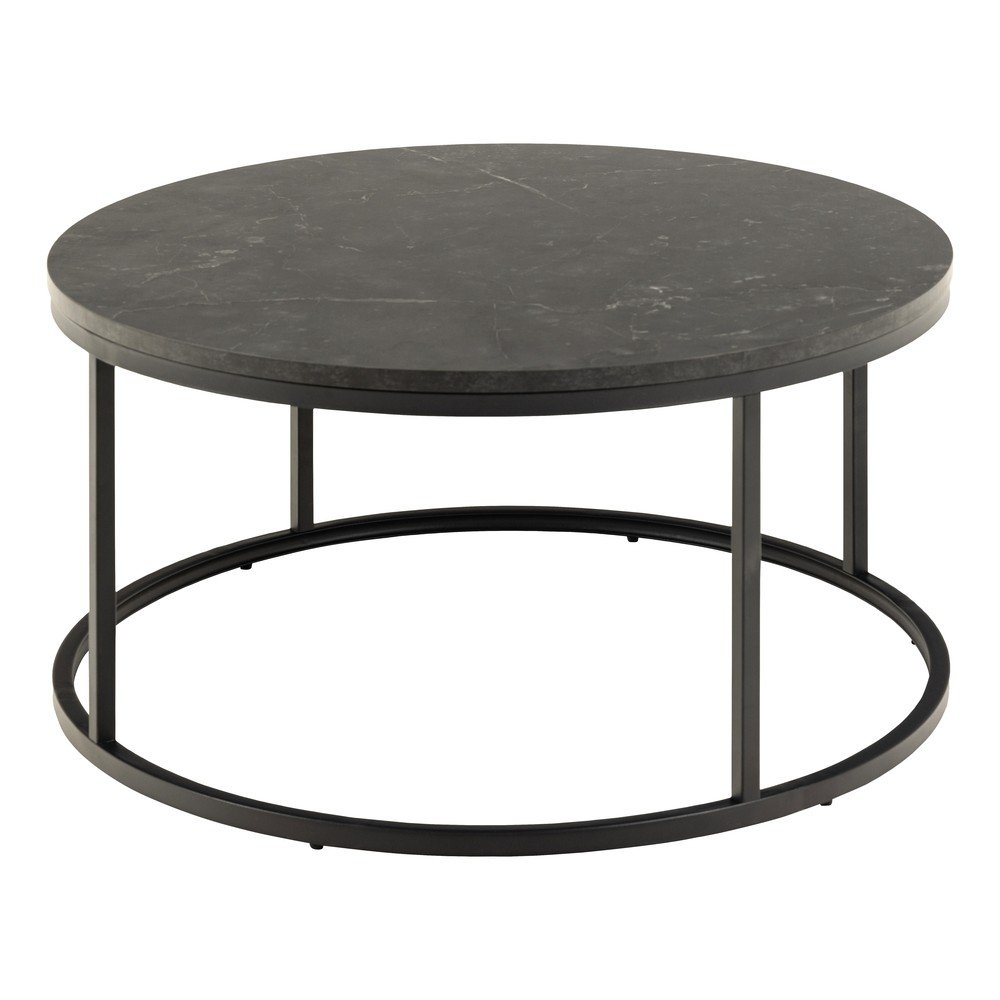Czarny okrągły stolik z blatem w dekorze marmuru ø 80 cm Spiro – Actona
