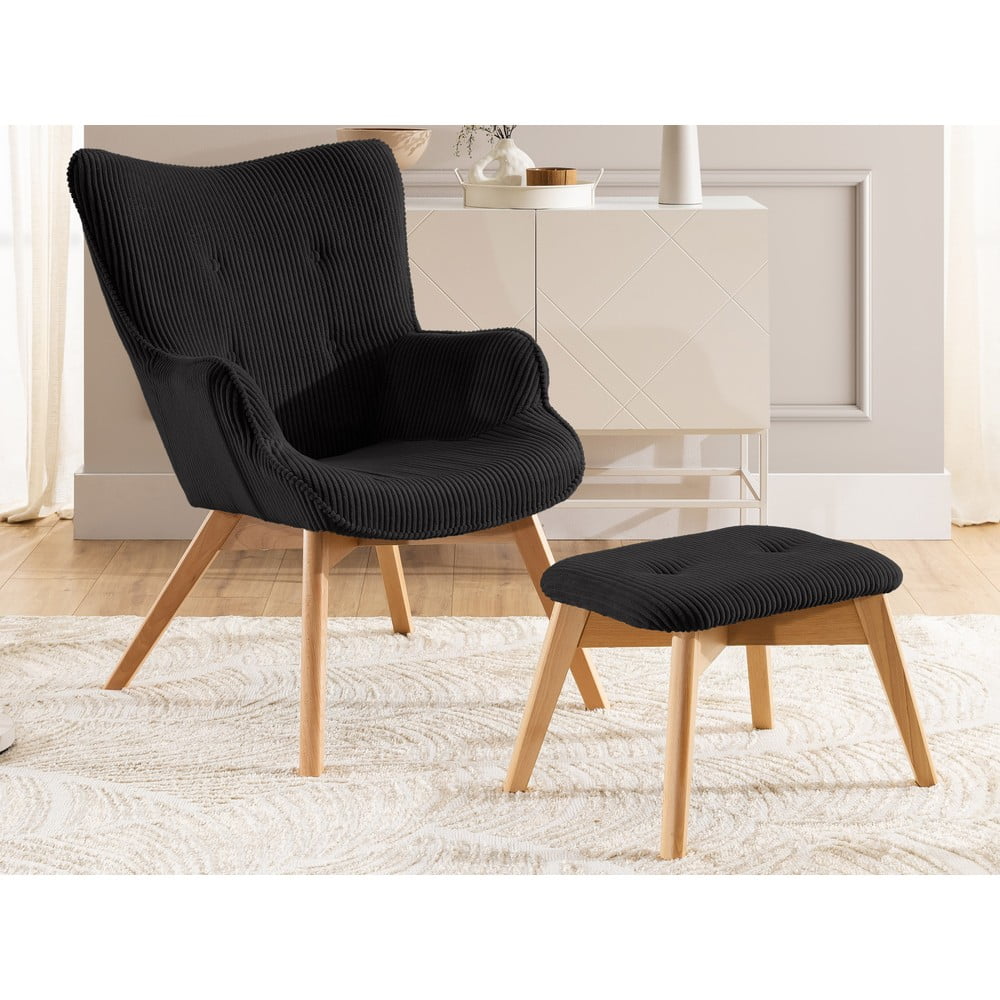 Czarny sztruksowy fotel z podnóżkiem Niko – Ropez