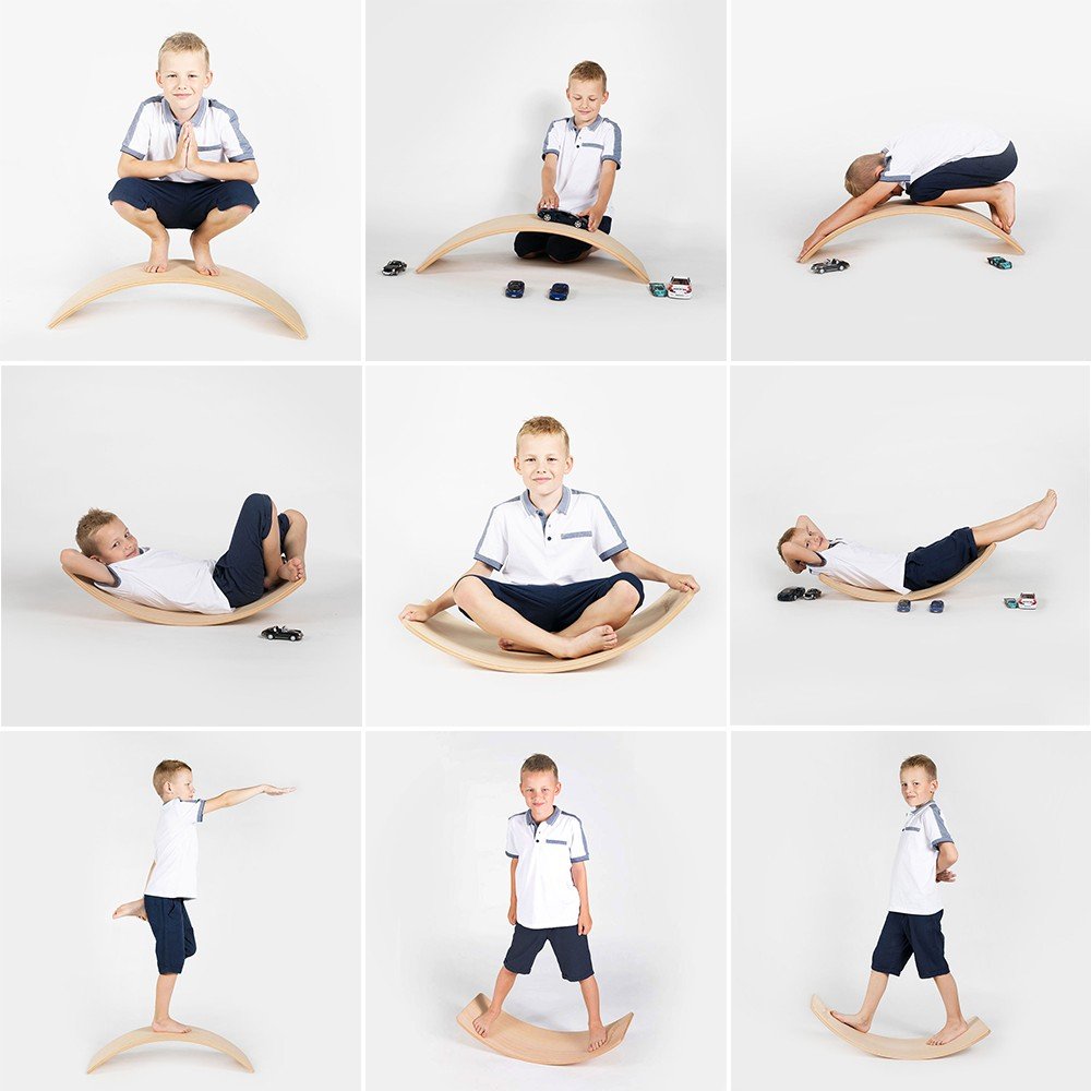 Wykonana jest z drewna sosnowego i zapewnia nieskończone możliwości kreatywnej zabawy dzięki zakrzywionemu kształtowi. Dzieci mogą używać go jako deski do balansowania, tunelu, mostu, zjeżdżalni, a nawet toru samochodowego. Co więcej, jej minimalistyczny design można łatwo dopasować do każdego wnętrza.