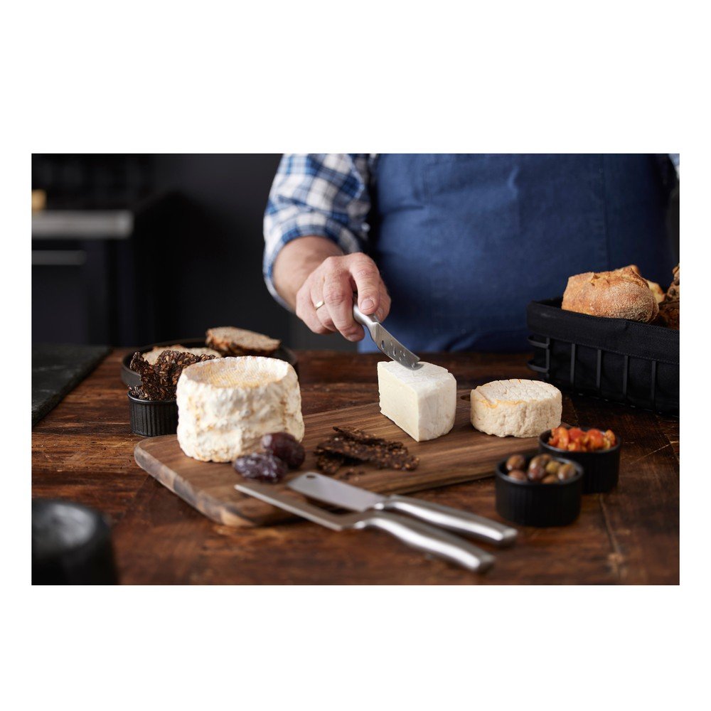 Deska do serów w zestawie z trzema nożami do sera ze stali nierdzewnej, jest idealna do krojenia i serwowania twardych, miękkich i kremowych serów. Nadaje się również do serwowania wędlin lub innych małych przekąsek.