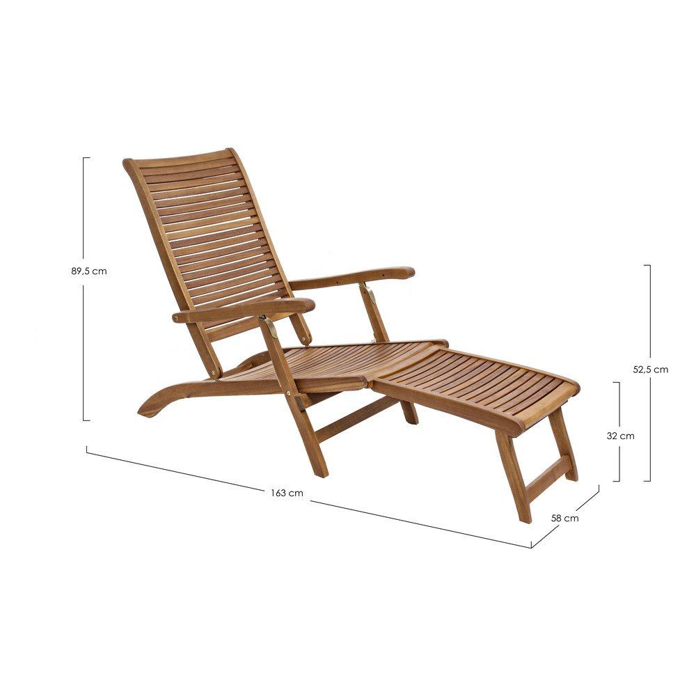 Leżak można rozłożyć do trzech różnych pozycji, dzięki czemu można łatwo ustawić idealne nachylenie do czytania, opalania się lub relaksu. Aby zapewnić maksymalny komfort, jest on wyposażony w praktyczne podłokietniki i przedłużoną sekcję podparcia nóg.