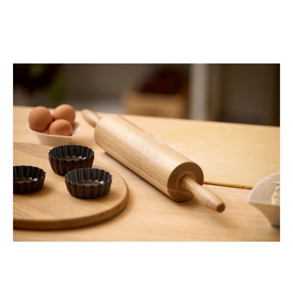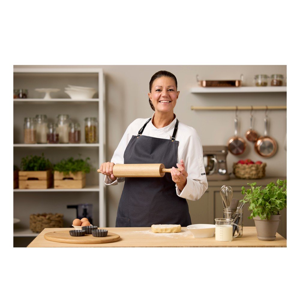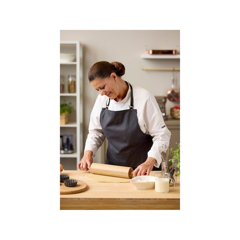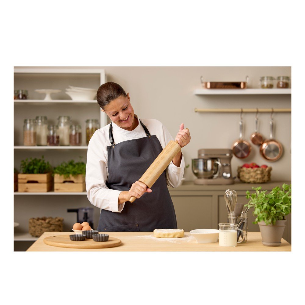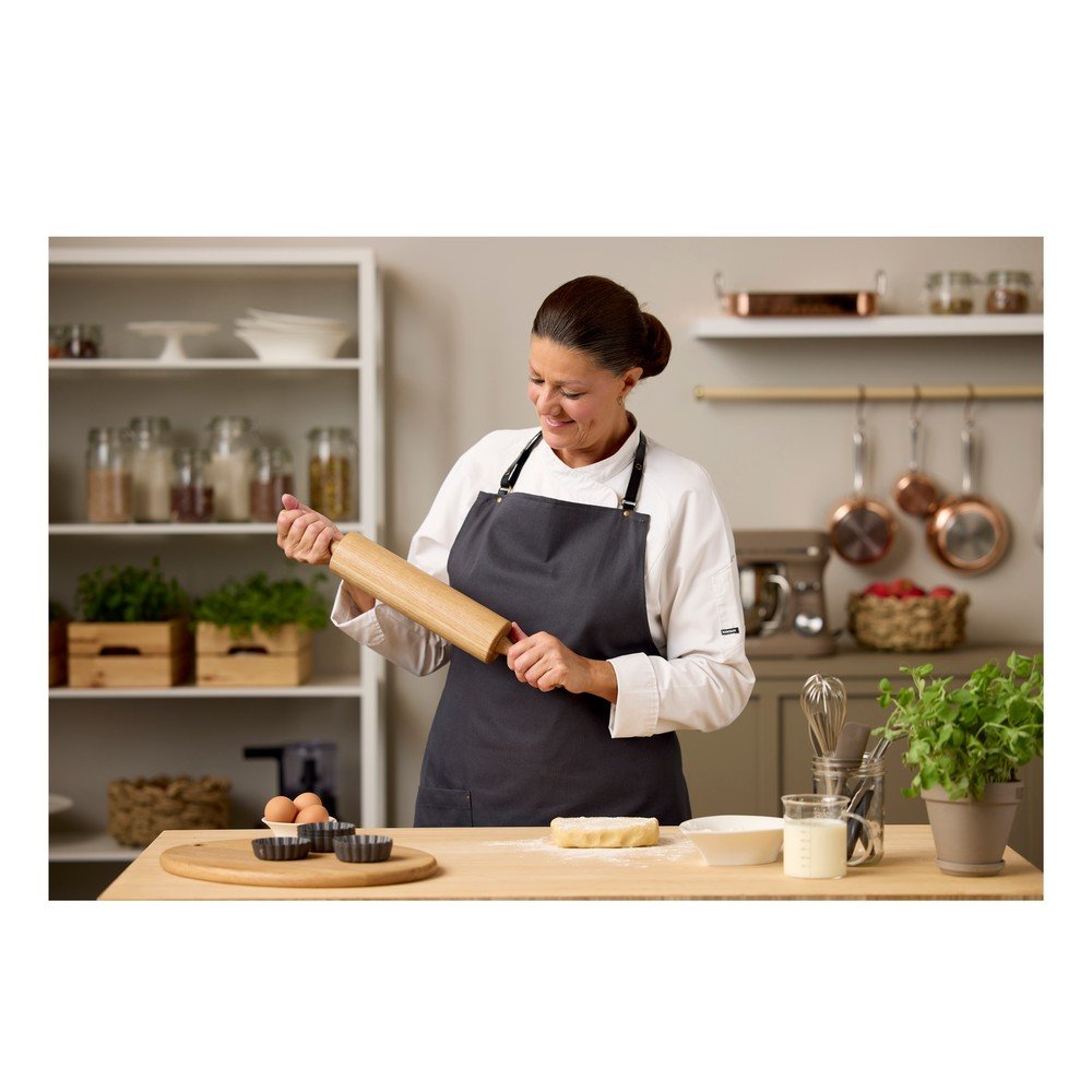 Wałka można używać do szerokiej gamy zadań związanych z pieczeniem – od przygotowywania ciasteczek i ciast po pizzę, kruchego ciasta, marcepanu lub masy cukrowej. Drewniana część wykonana jest z drewna dębowego z certyfikatem FSC™, który gwarantuje, że drewno pochodzi z odpowiedzialnej gospodarki leśnej.