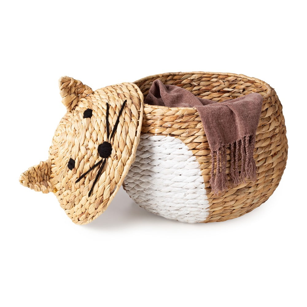 Dziecięcy kosz na zabawki Cat marki Compactor wniesie do pokoju dziecka element zabawy, pomagając jednocześnie w organizacji. Kosz wykonany jest z hiacyntu wodnego w naturalnym kolorze. Dzięki pokrywie w kształcie głowy kota z uroczymi detalami, ten kosz na zabawki będzie również stylowym dodatkiem do pokoju.