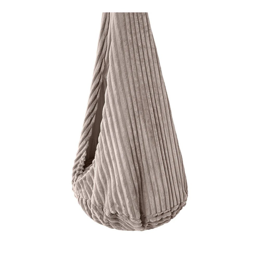 Huśtawka ma przyjemny kształt kokonu i jest wykonana z miękkiego, materiału z przyjaznym dla skóry wykończeniem. Jednocześnie jest wytrzymała i gotowa do codziennej zabawy. Dla jeszcze większego komfortu, w zestawie znajduje się miękka poduszka, która zapewnia wygodę podczas bujania lub czytania ulubionych książek.