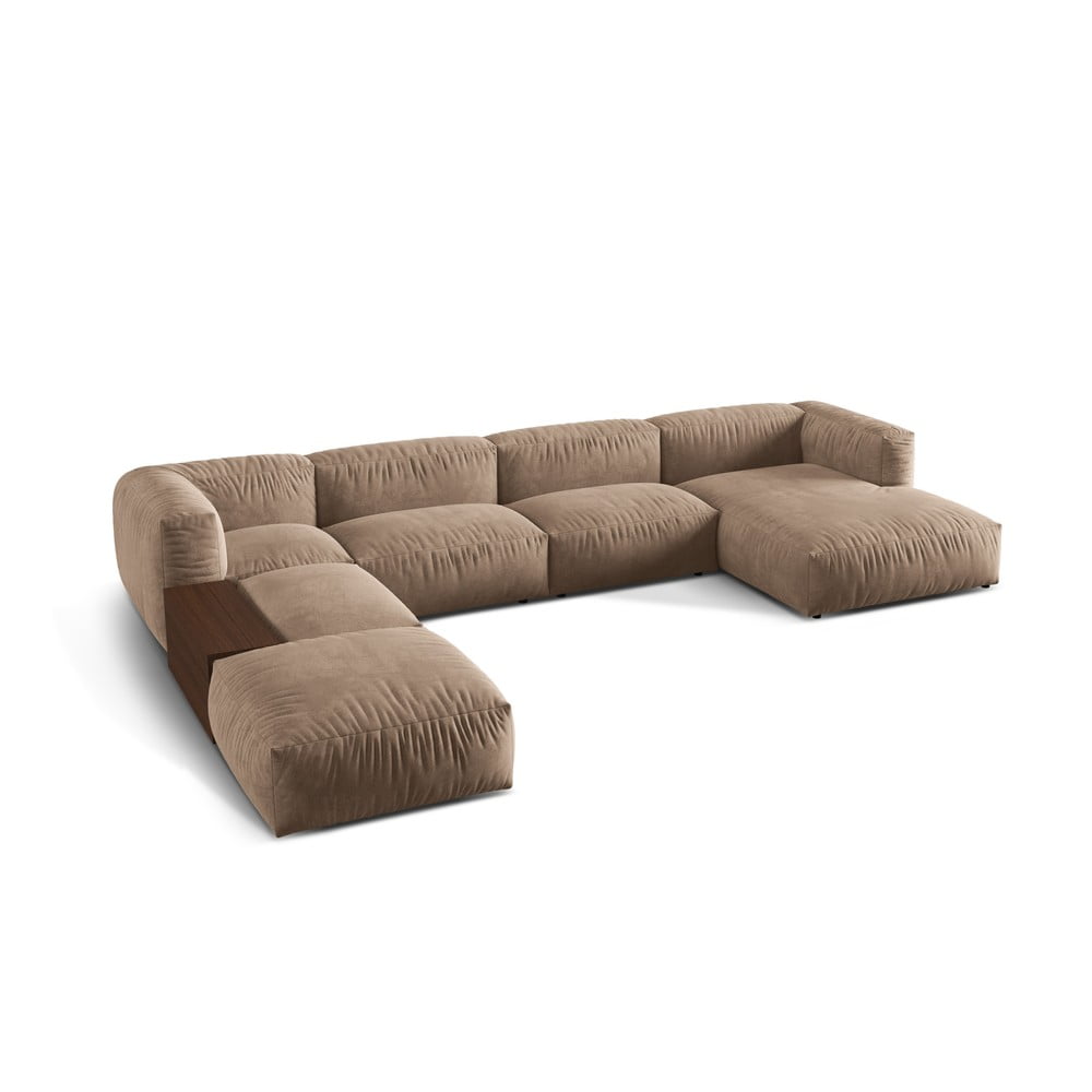 Jasnobrązowy aksamitny narożnik modułowy (lewostronny/w kształcie litery U) Martina – Micadoni