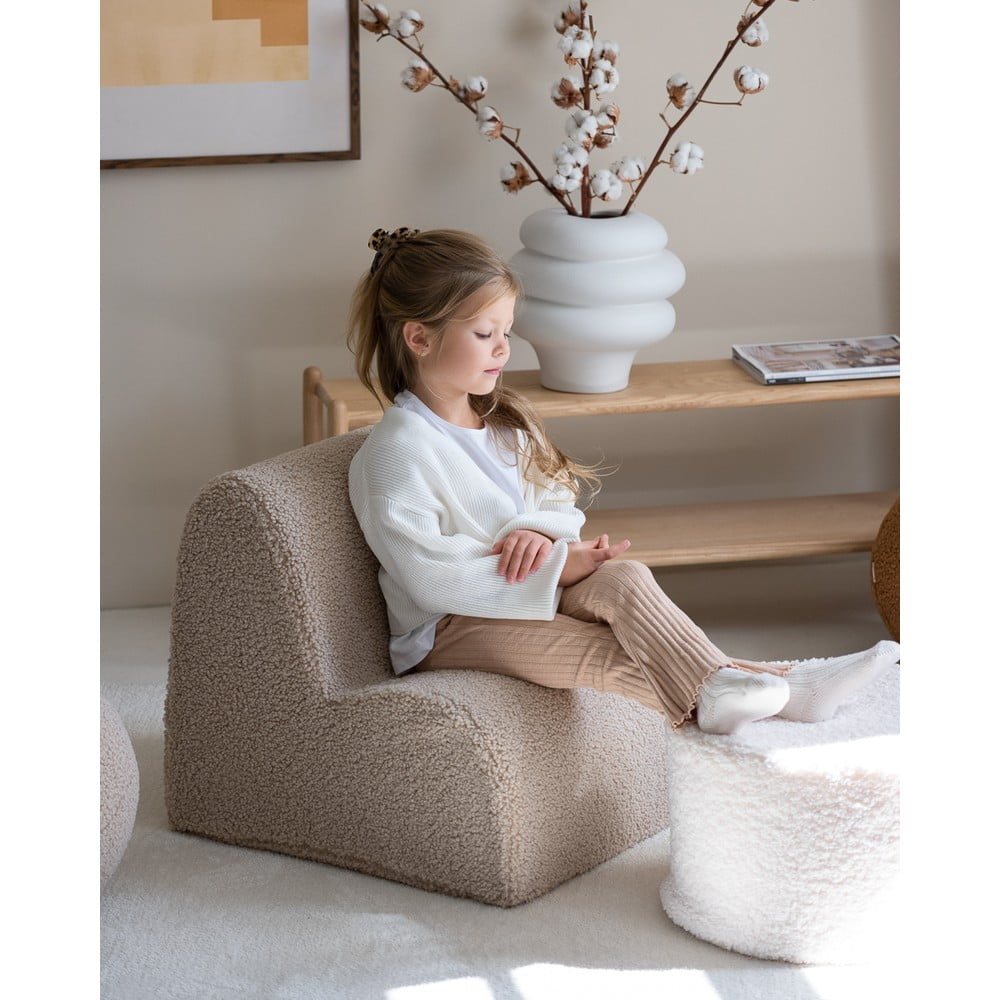 Fotel dziecięcy Cloud marki Wigiwama wniesie przytulny i marzycielski akcent do każdego pokoju dziecięcego. Inspirowany puszystymi chmurami, jego miękki design sprawia, że jest idealny do relaksu, czytania lub zabawy.