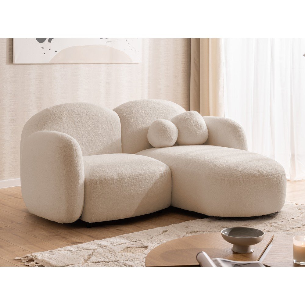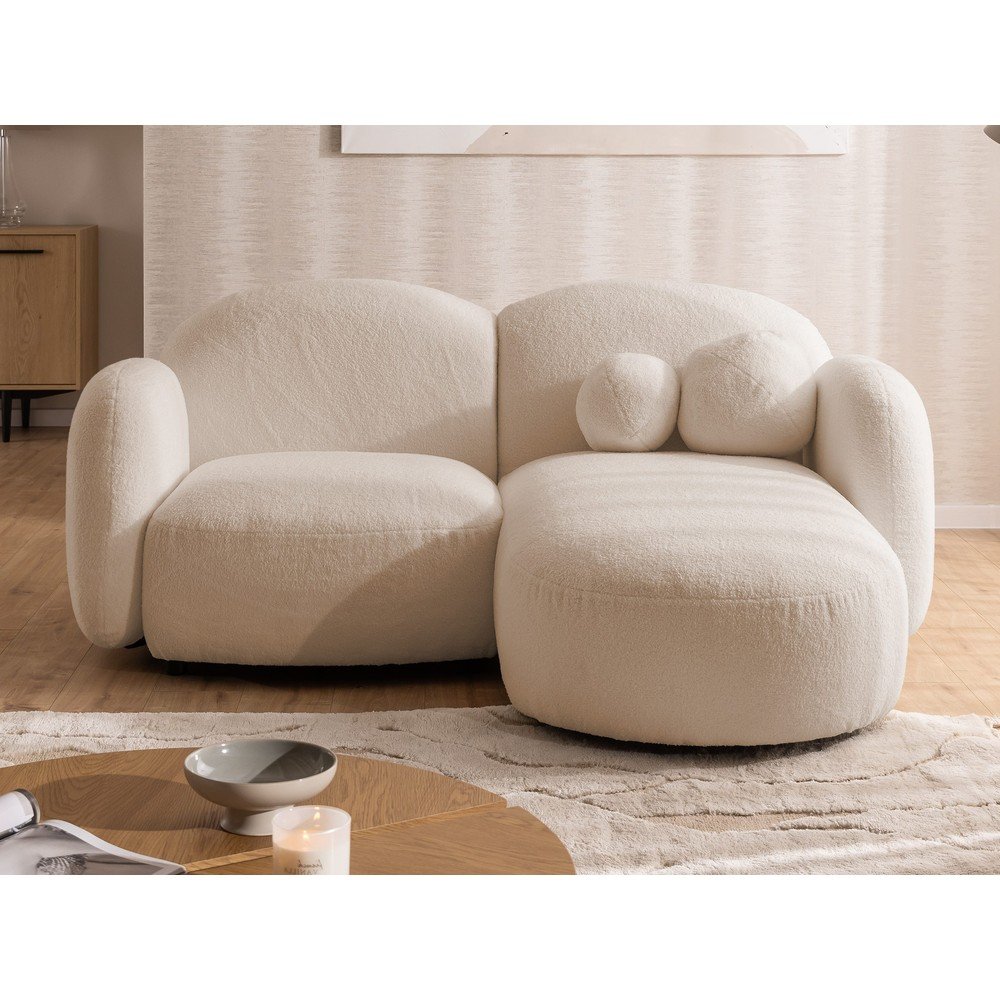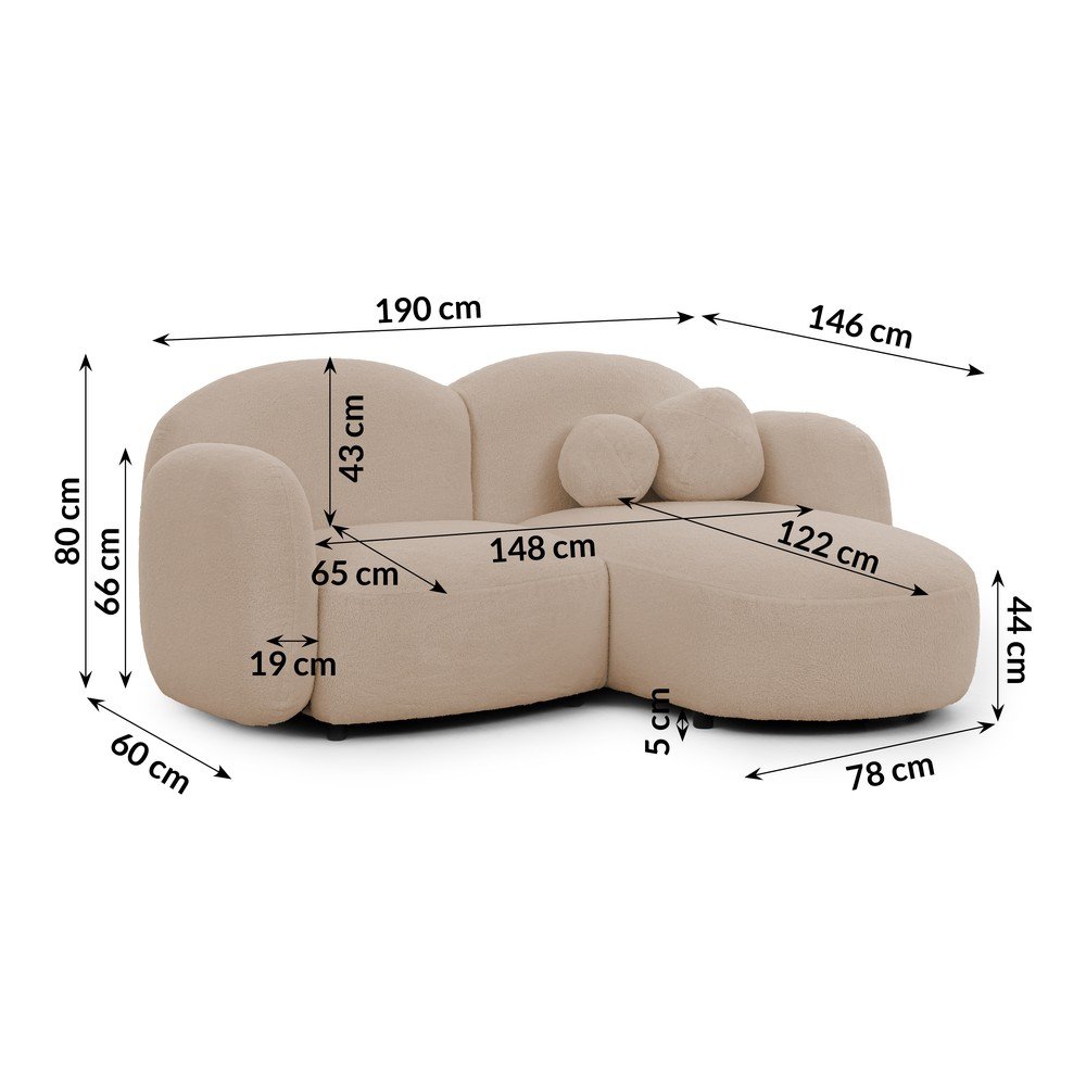 Jasnobrązowy narożnik z materiału bouclé (prawostronny/z szezlongiem) Orbit – Ropez