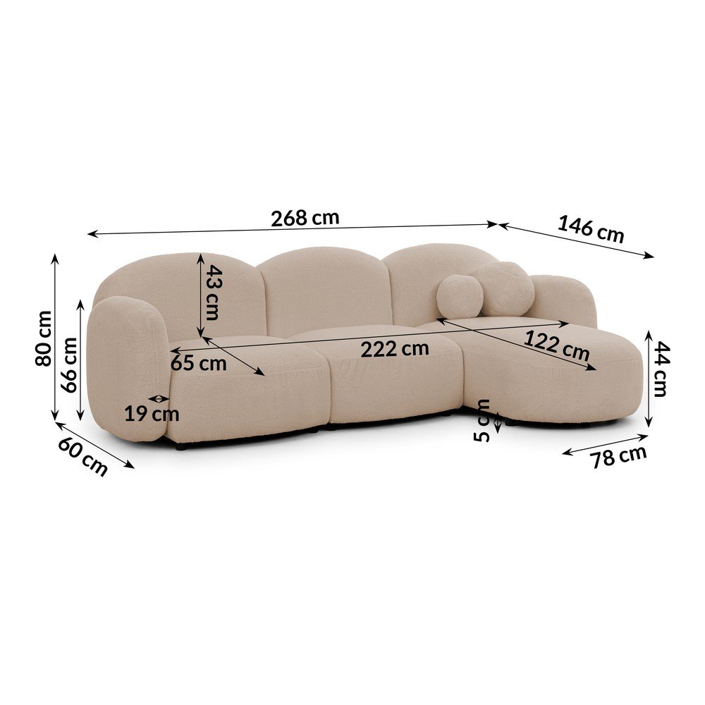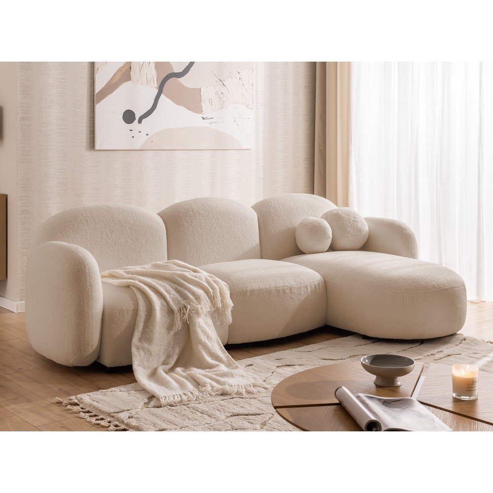 Jasnobrązowy narożnik z materiału bouclé (prawostronny/z szezlongiem) Orbit – Ropez