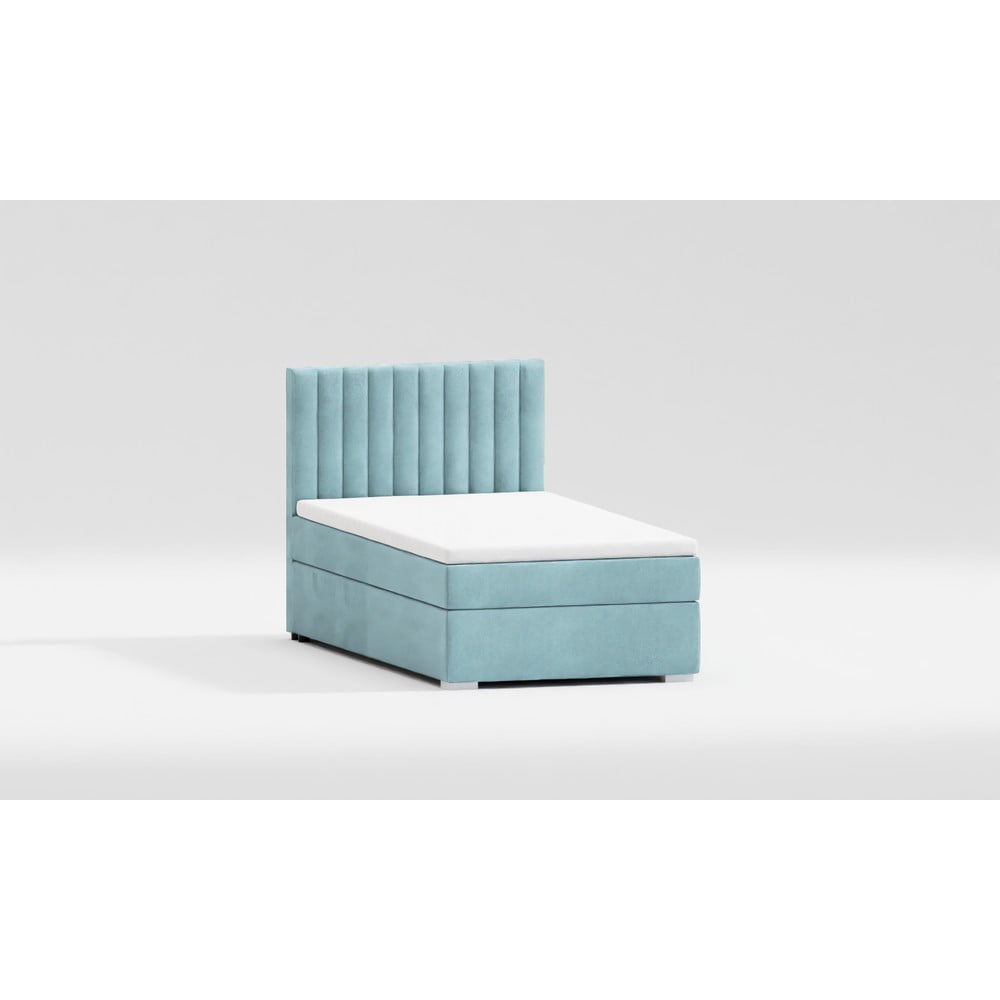 Jasnoniebieskie tapicerowane łóżko ze schowkiem i stelażem 80×200 cm Bunny – Ropez