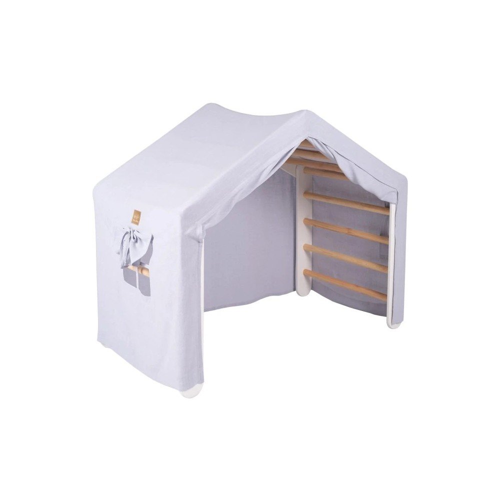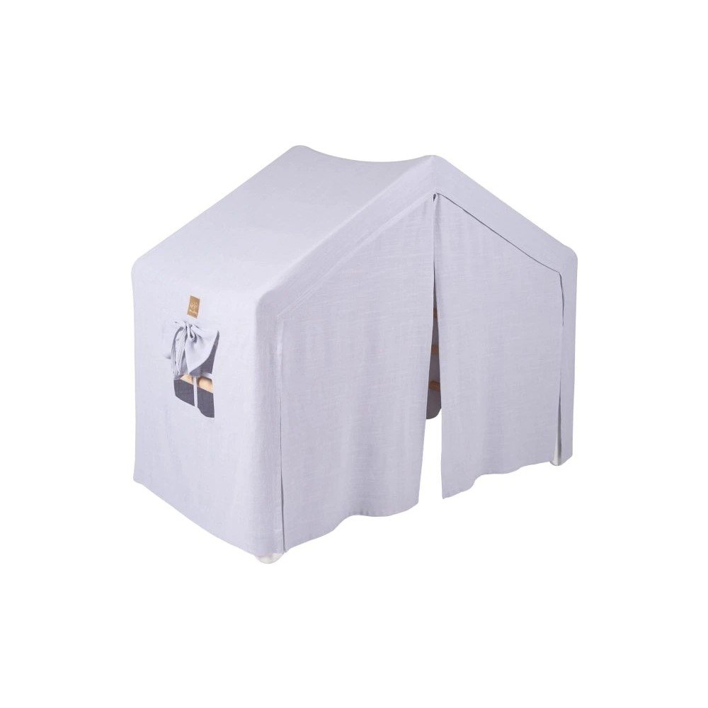 Namiot jest wykonany z połączenia lnu i wiskozy i można go łatwo zdjąć lub założyć z powrotem, aby stworzyć przytulne miejsce do spania.