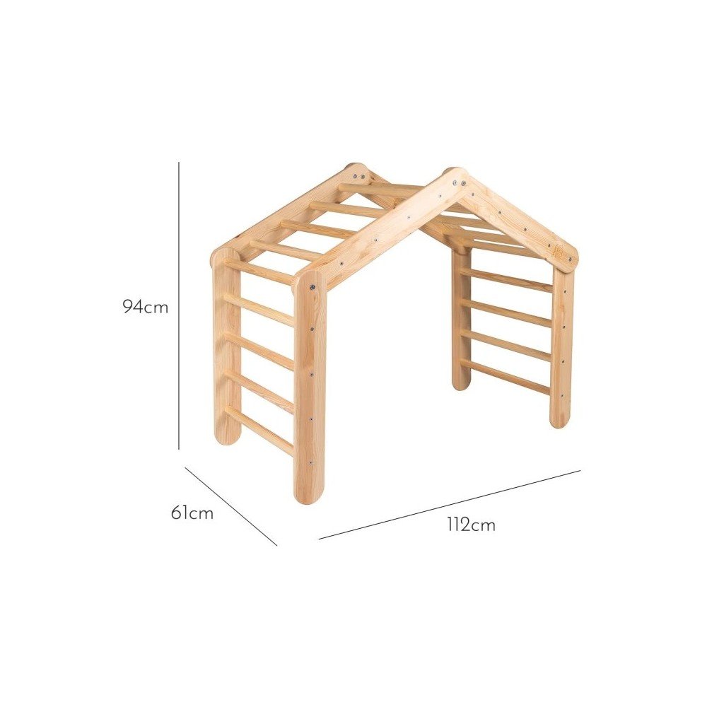 Drabinkę można łatwo złożyć, aby zrobić miejsce na inne aktywności. Wysuwane mocowanie sprawia, że transformacja jest błyskawiczna – jednym prostym ruchem domek przekształca się w dwie drabinki. Domek jest wykonany z drewna i spełnia wymogi certyfikatu dla produktów przeznaczonych dla dzieci. Jest przeznaczony dla dzieci w wieku od 4 lat, a do bezpiecznego użytkowania zalecany jest nadzór osoby dorosłej.
