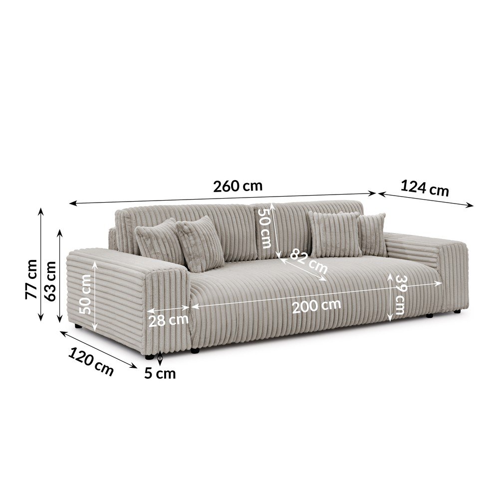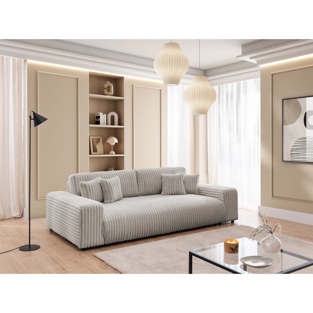 Jasnoszara sztruksowa rozkładana sofa ze schowkiem 260 cm Justin – Ropez