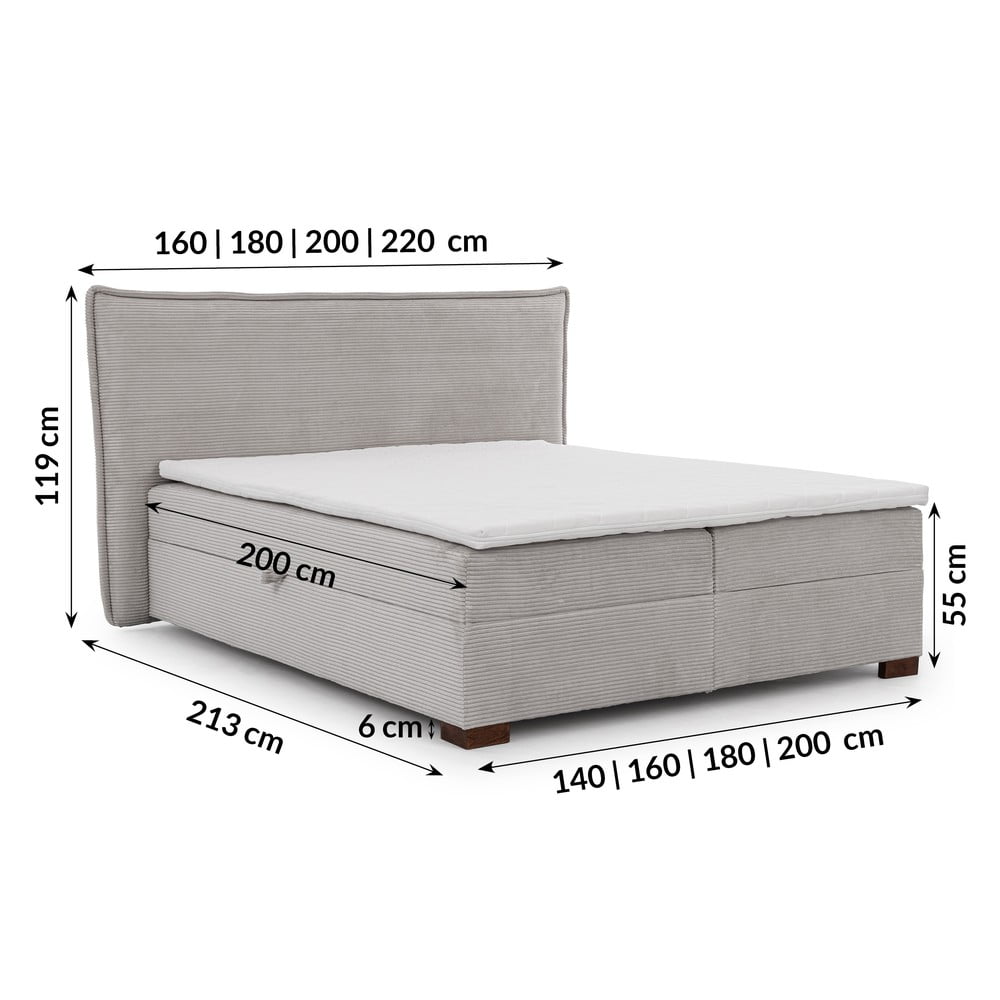Jasnoszare łóżko kontynentalne ze schowkiem 140×200 cm Lysa – Ropez