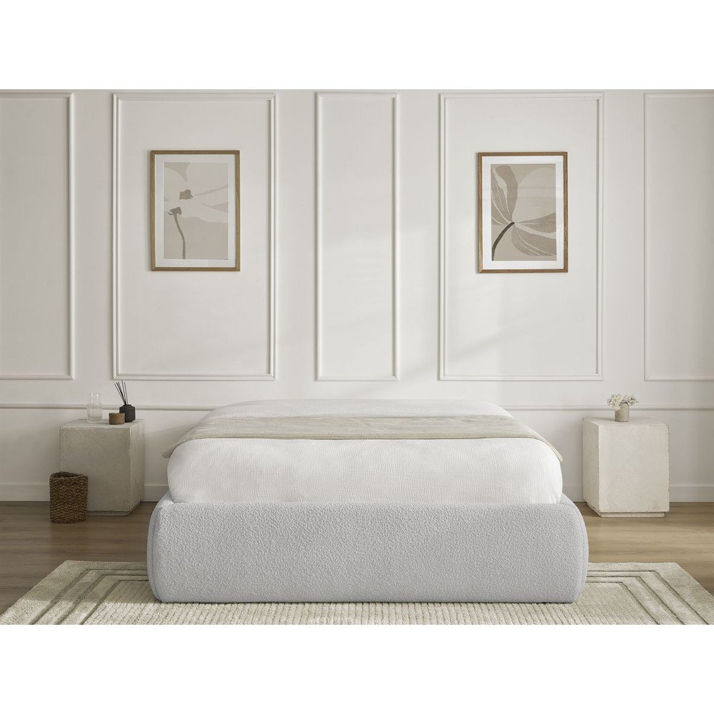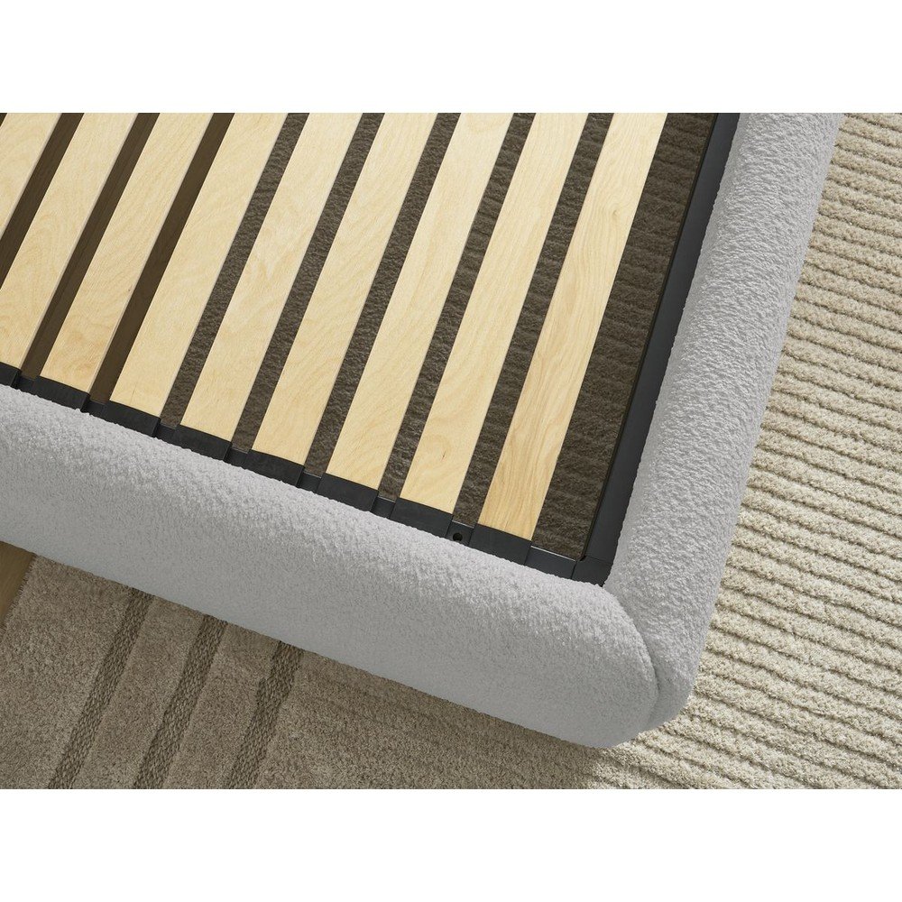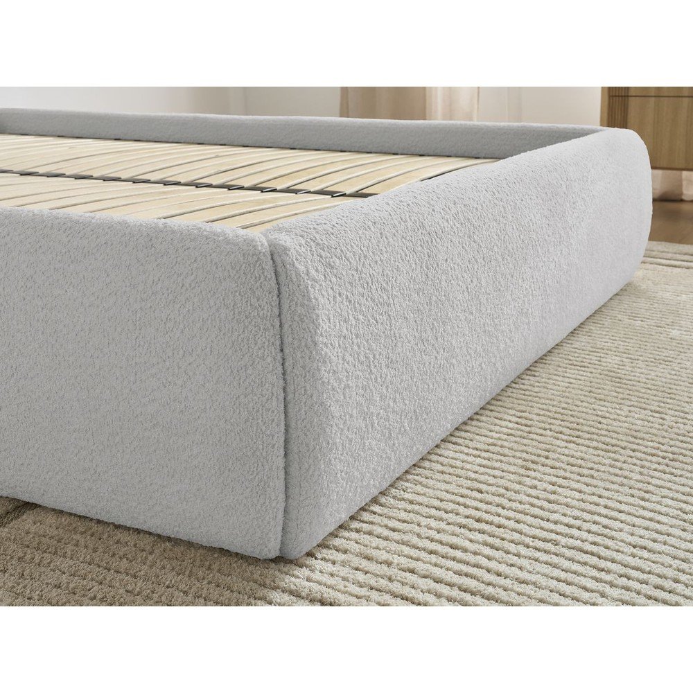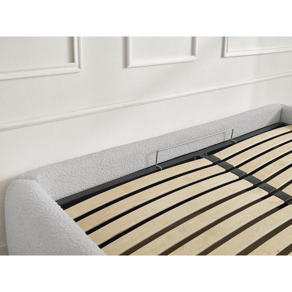Jasnoszare tapicerowane łóżko dwuosobowe bez zagłówka ze schowkiem i stelażem 160×200 cm Inera – Bobochic Paris