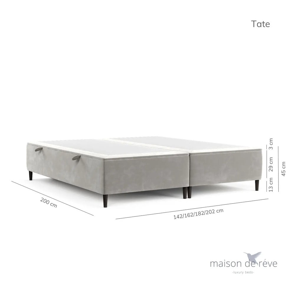 Jasnoszare tapicerowane łóżko dwuosobowe ze schowkiem 200×200 cm Tate – Maison de Rêve
