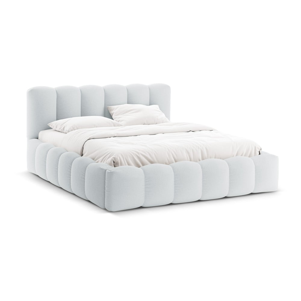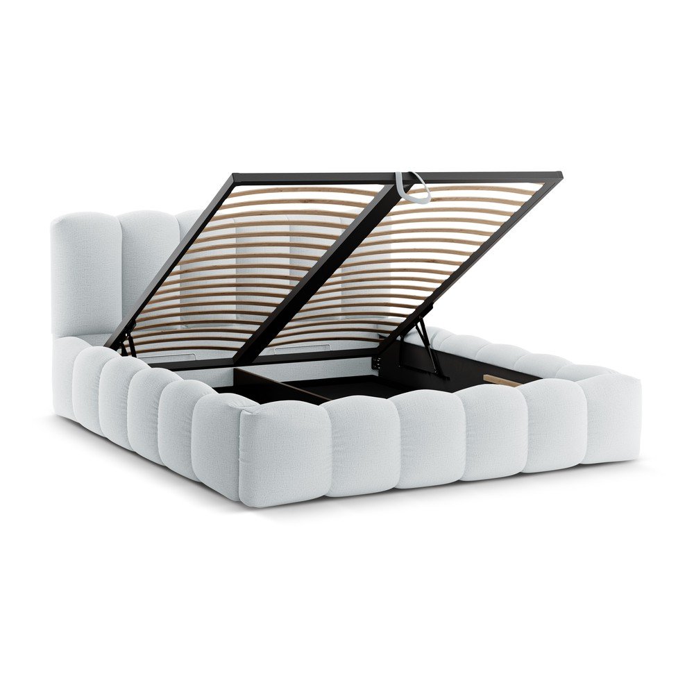 Jasnoszare tapicerowane łóżko dwuosobowe ze schowkiem i stelażem 180×200 cm Lupine – Micadoni