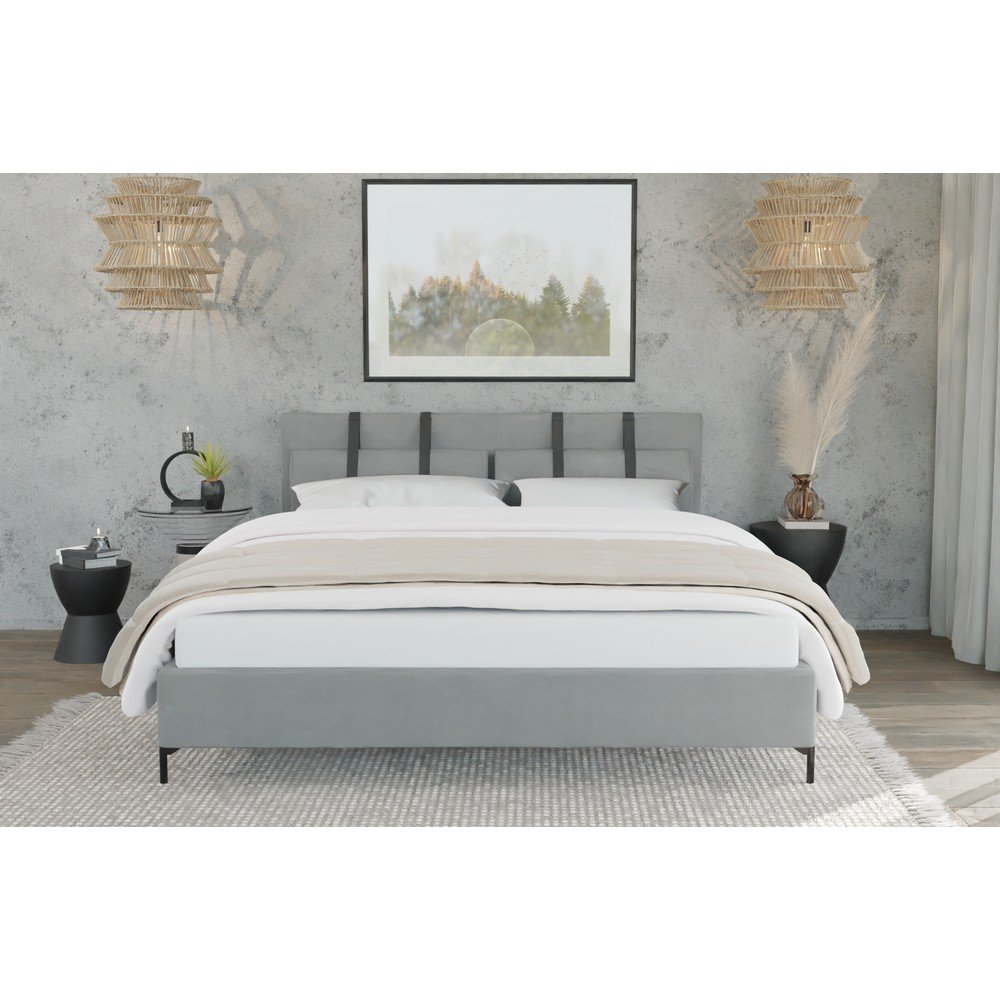 Jasnoszare tapicerowane łóżko dwuosobowe ze stelażem 160×200 cm Tulsa – Ropez