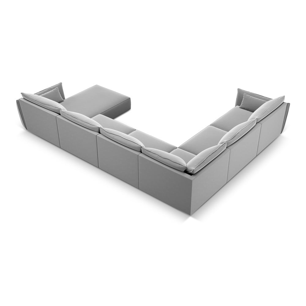 Jasnoszary aksamitny narożnik (lewostronny/w kształcie litery U) Vanda – Mazzini Sofas