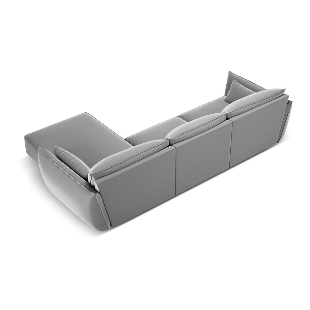 Jasnoszary aksamitny narożnik (prawostronny/z szezlongiem) Vanda – Mazzini Sofas