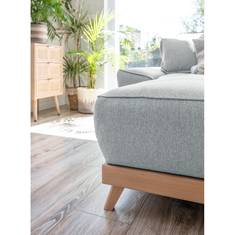 Sofa posiada schowek i można ją rozłożyć, aby stworzyć wygodne miejsce do spania. W zestawie znajdują się 2 poduszki dekoracyjne. Do sofy można dokupić podnóżek.