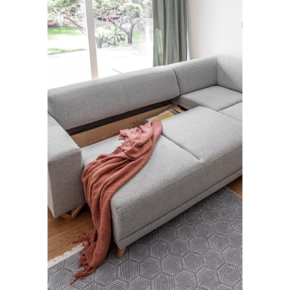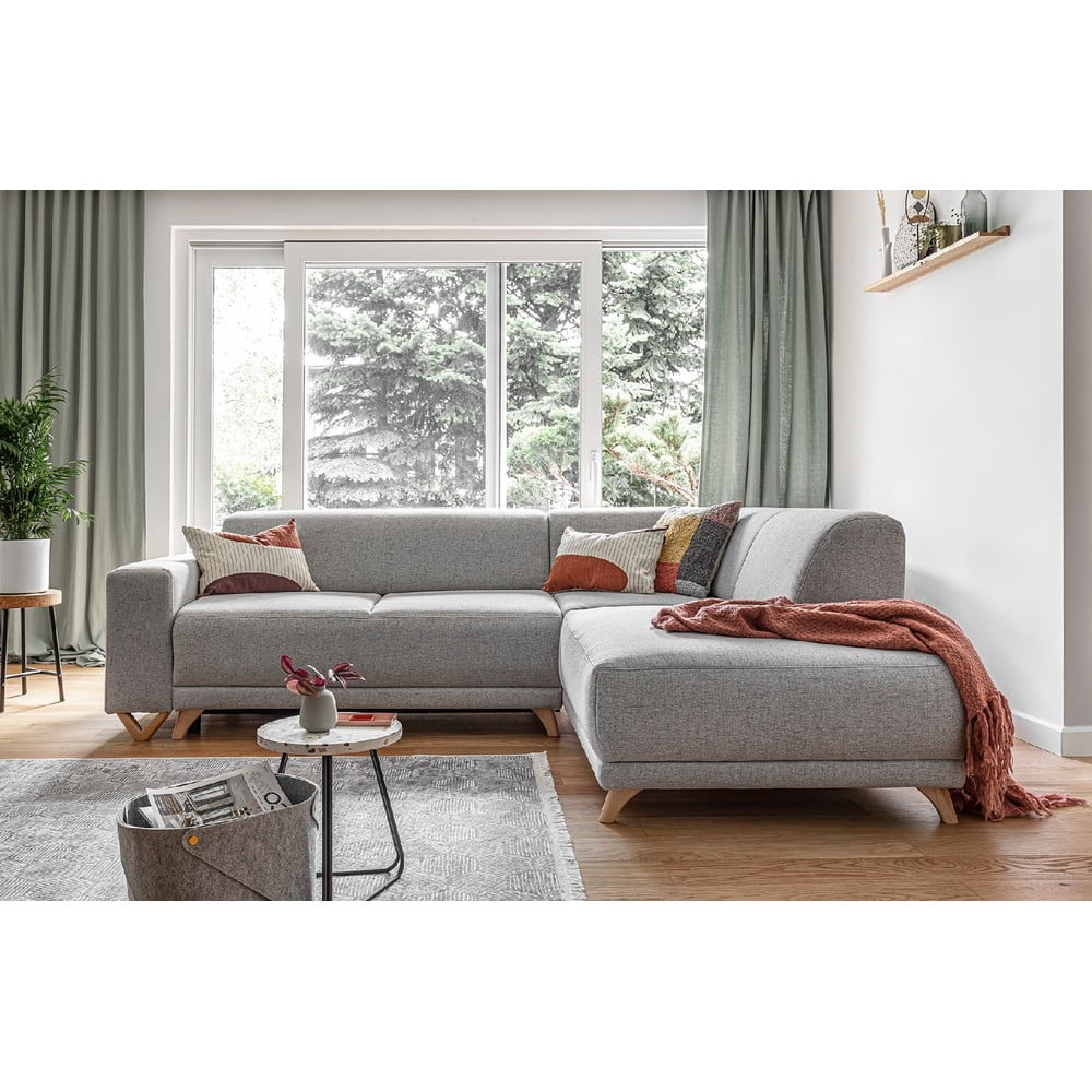 Jasnoszary rozkładany/ze schowkiem narożnik (prawostronny/w kształcie litery L) Classy Sophie – Miuform