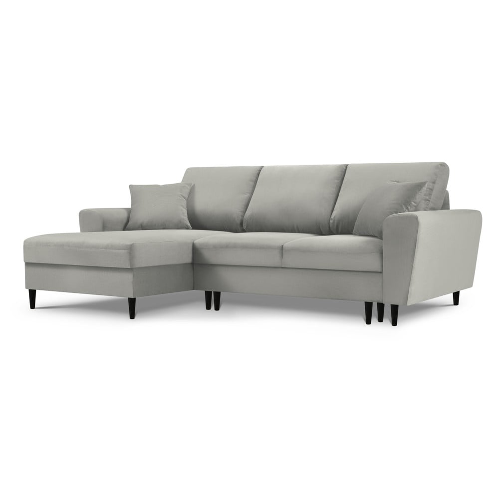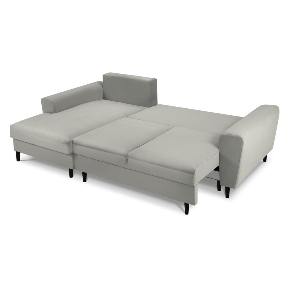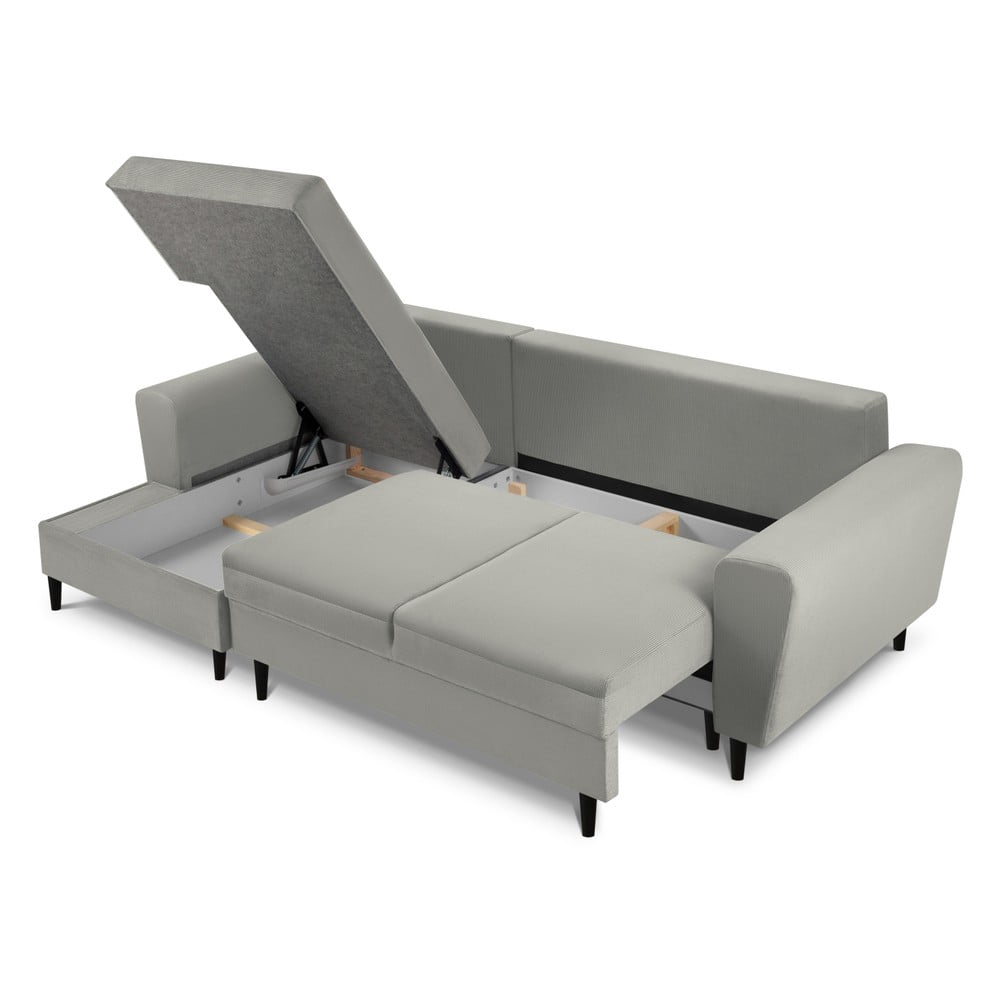 Jasnoszary sztruksowy rozkładany narożnik ze schowkiem (lewostronny/z szezlongiem) Kyoto – Cosmopolitan Design