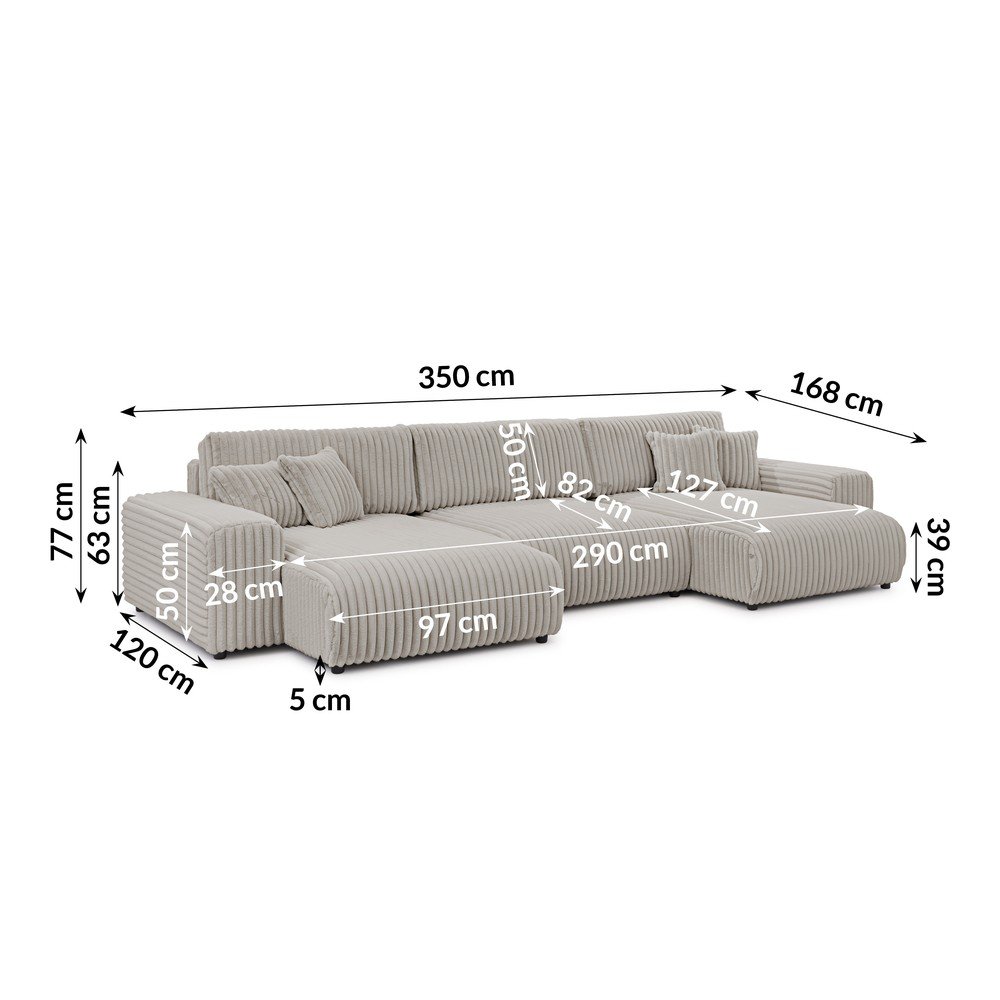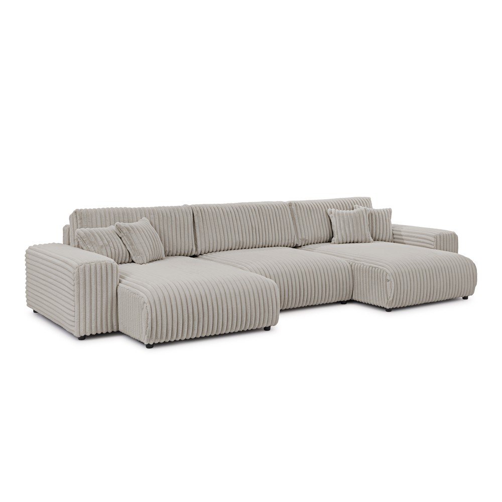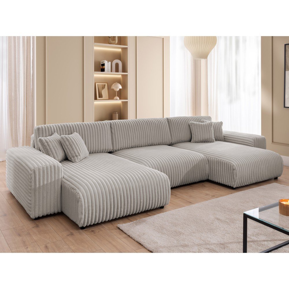 Jasnoszary sztruksowy rozkładany narożnik ze schowkiem (w kształcie litery U) Sarina – Ropez