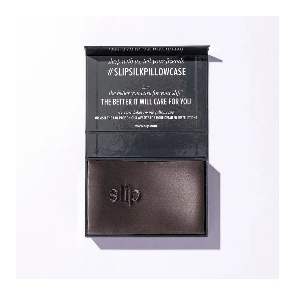 Poszewka Charcoal marki slip wykonana jest z gładkiego jedwabiu, który jest przyjemny w dotyku, przyczynia się do komfortowego snu i mniejszego plątania się włosów.